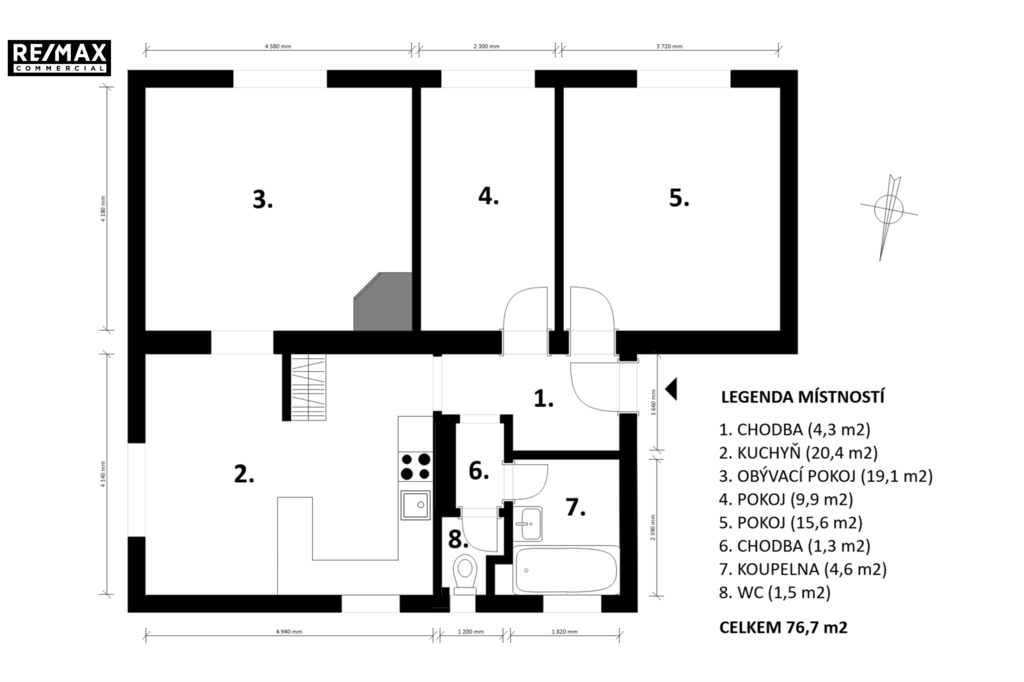 | Dispozice/podlahová plocha: | 3+1/77 m² |