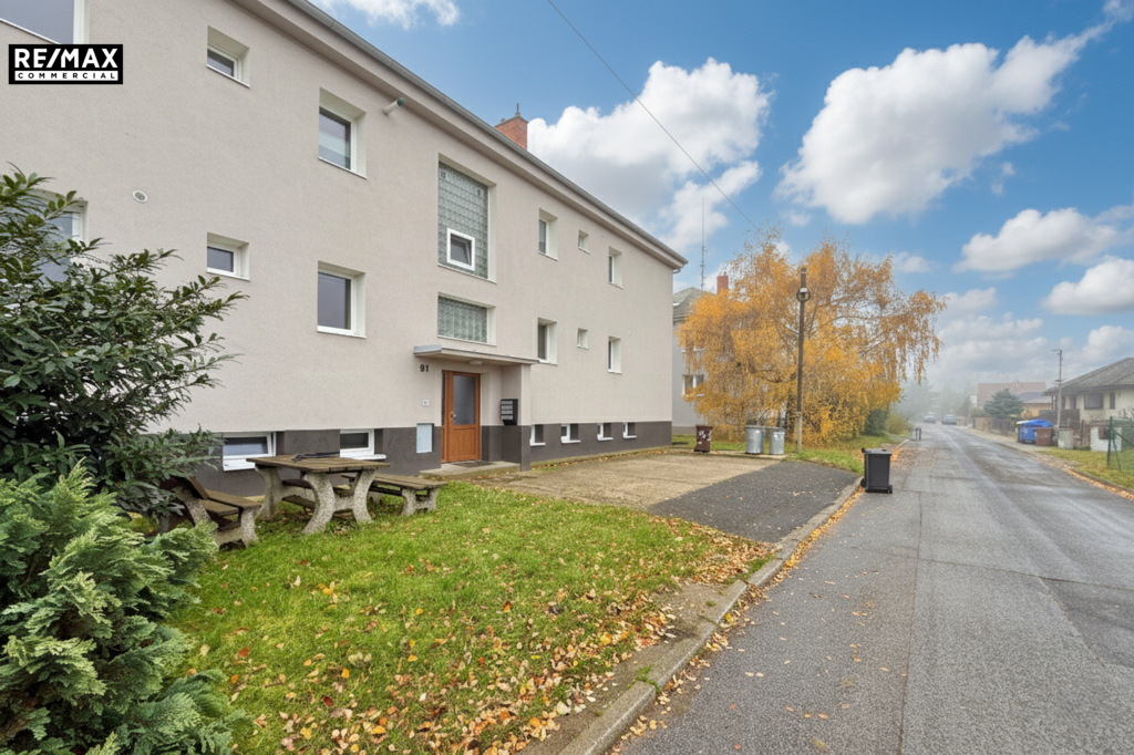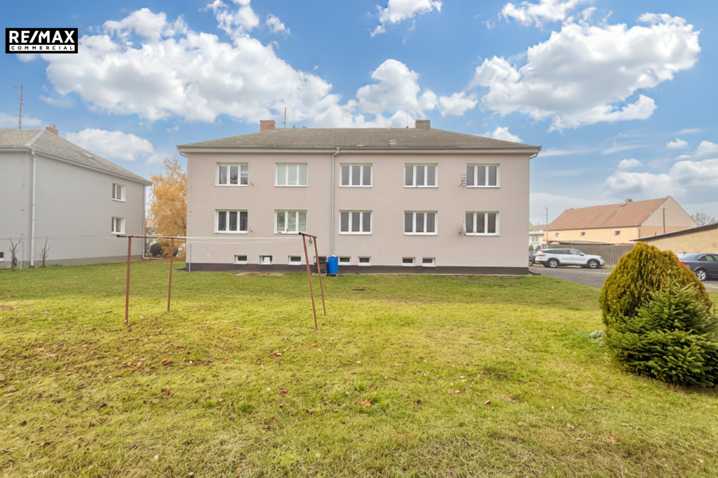 Družstevní byt o dispozici 3+1 a podlahové ploše 77 m² se nachází ve zvýšeném přízemí (1. NP) bytového domu v obci Dušníky, jen pár minut od Roudnice nad Labem. K bytu patří i zahrádka za domem a tři sklepní prostory o celkové výměře 26 m².