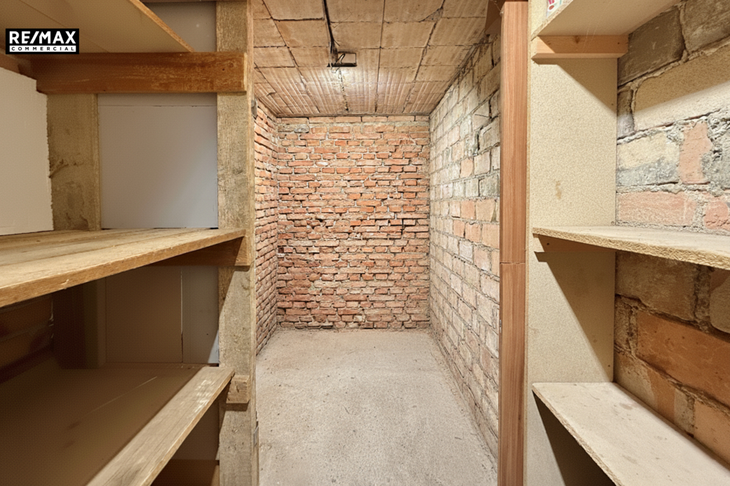 K bytu náleží tři prostorné sklepy v 1. podzemním podlaží – prázdný sklep o výměře 13,8 m², sklep s kotlem o výměře 7,6 m² a sklad na tuhá paliva o výměře 4,6 m². Celkem tak máte k dispozici více než 26 m² úložného prostoru pro dřevo, nářadí či sezónní vybavení.