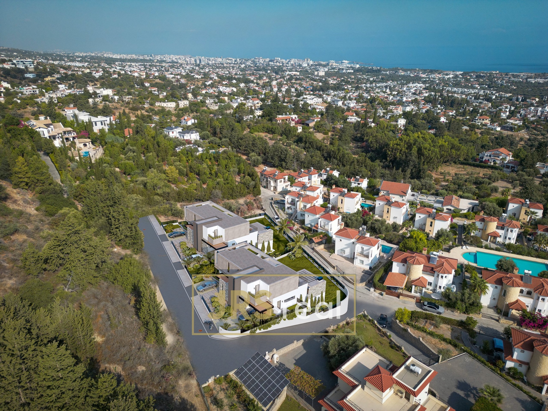 V každém patře si užijete nádherný výhled na moře i hory, a to díky poloze vily na vyvýšeném místě. Moře je vzdálené zhruba 3 km, tedy ideální pro klidné bydlení bez turistického ruchu. Do centra města Girne dojedete autem za 15 minut, na letiště Larnaka zhruba za hodinu a půl.