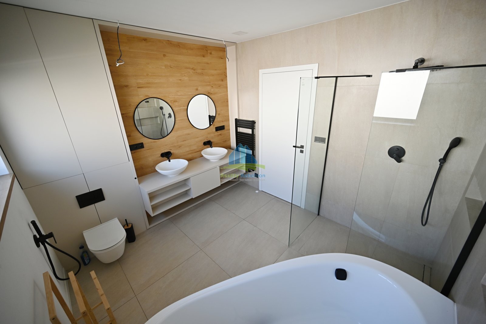 Tyto prvky zajišťují nejen vysoký komfort bydlení, ale také výraznou úsporu nákladů a připravenost na budoucí životní styl. Samozřejmostí je podlahové topení v celém domě.