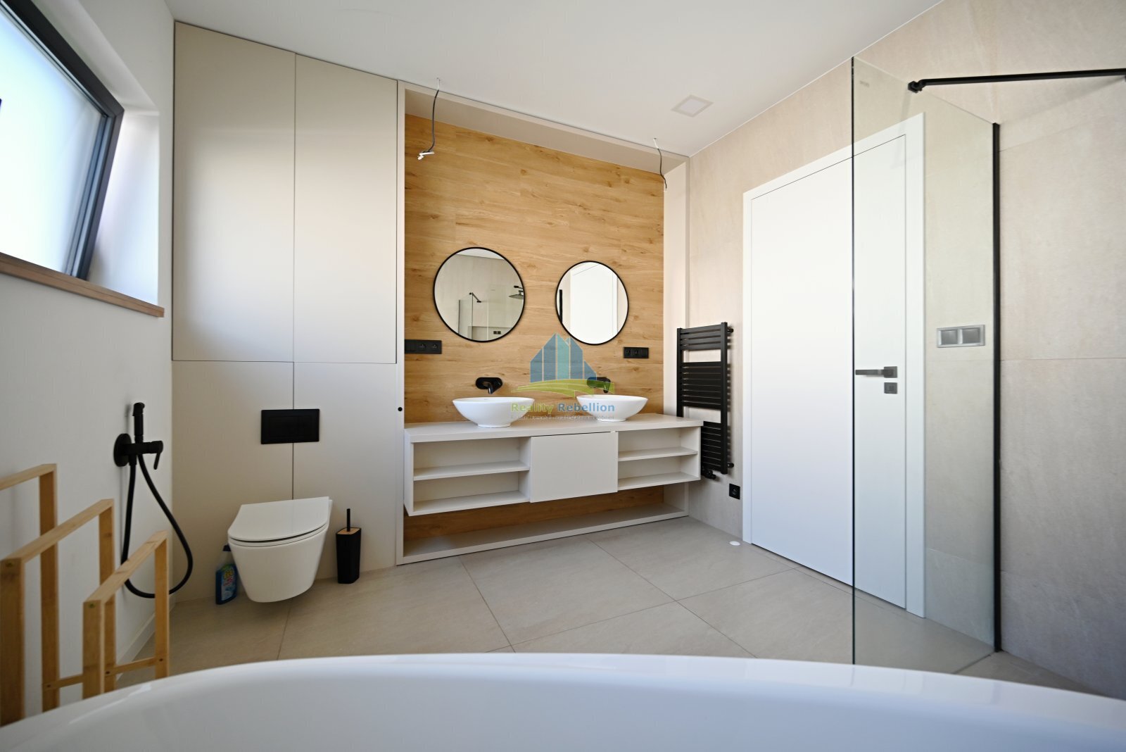 Dům nabízí tři samostatné ložnice. Dále koupelnu s WC, vanou, sprchovým koutem a dvěma umyvadly. Přímo u vchodu se nachází samostatné WC s umyvadlem.. Součástí je i spíž a technická místnost. Hlavní ložnice disponuje prostornou šatnou, kterou ocení hlavně ženy.