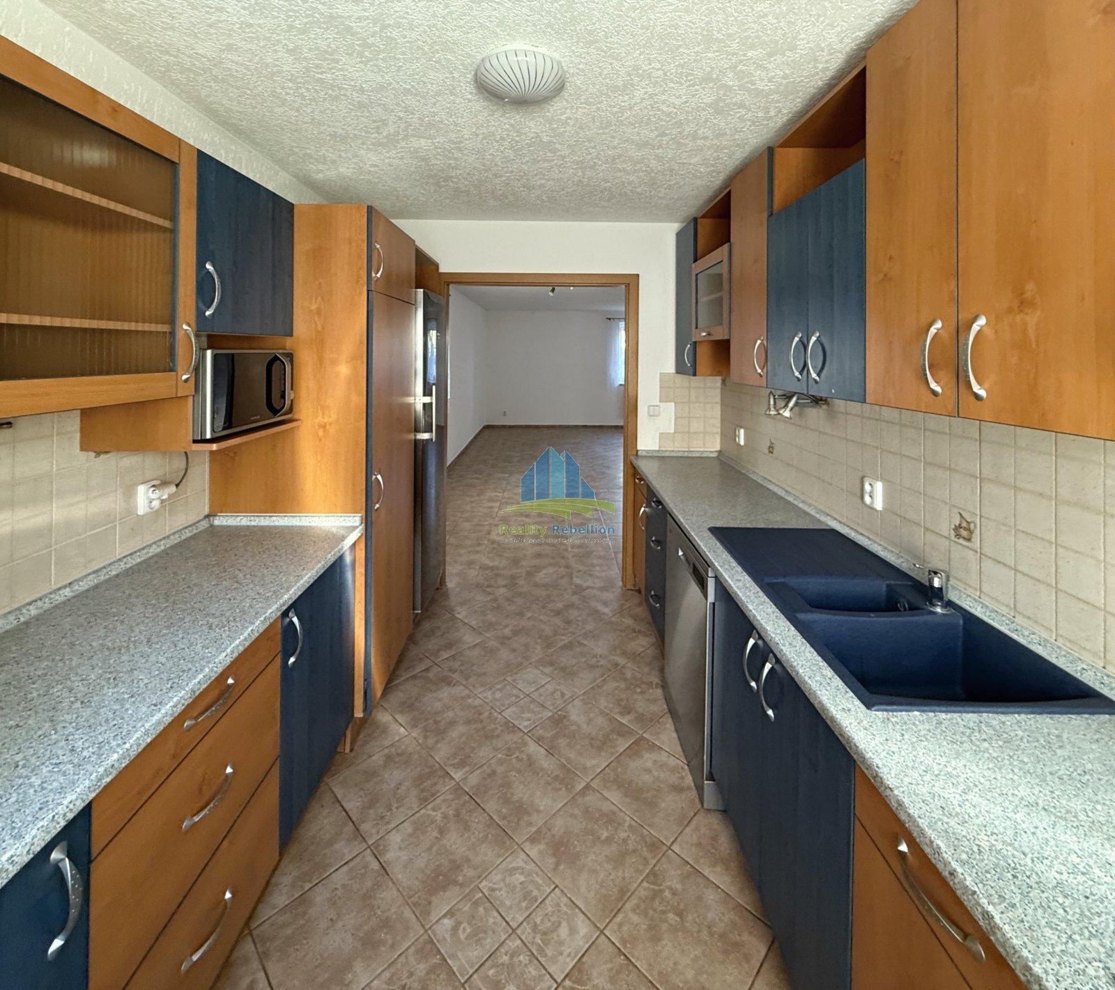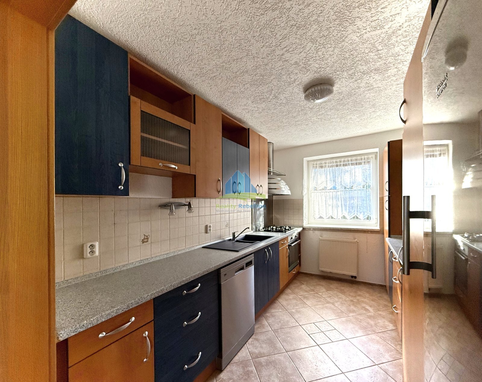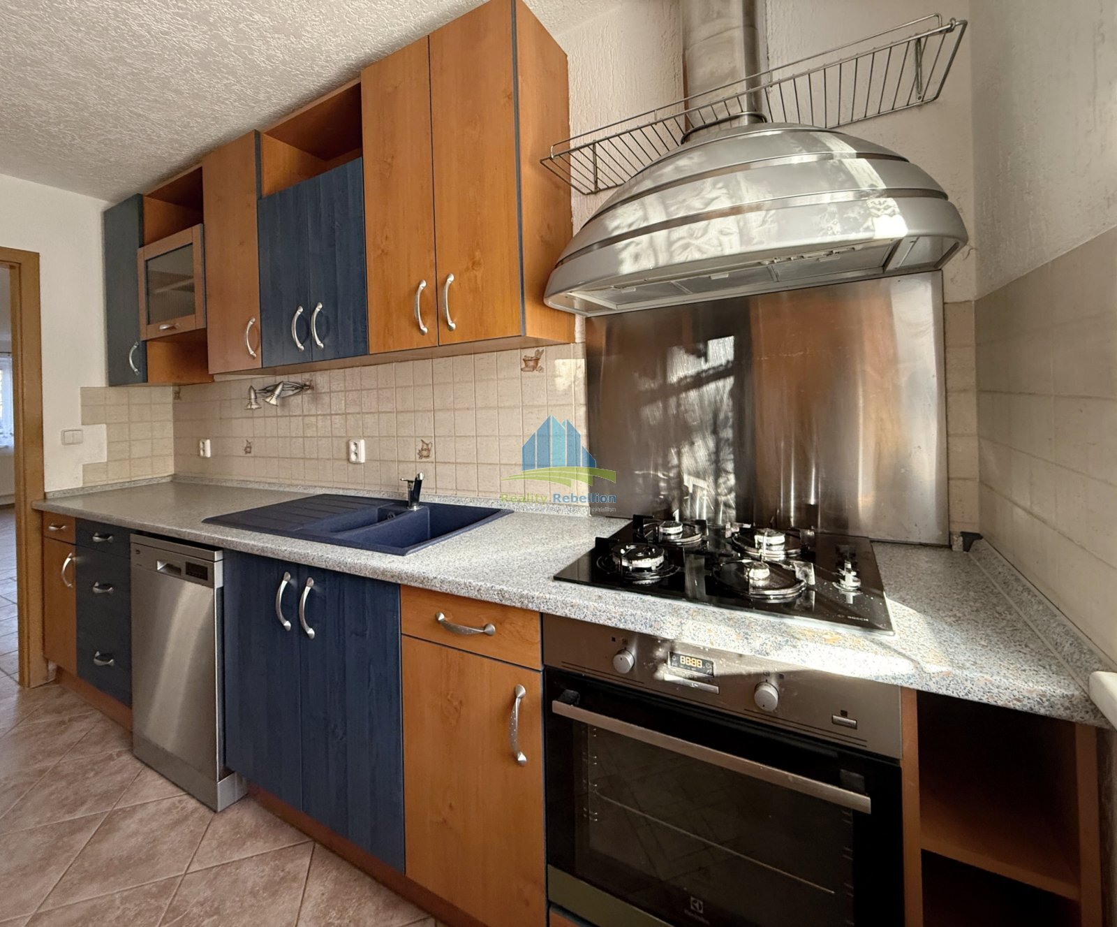 Z obývacího pokoje je také vstup do kuchyně, kde je na míru postavená kuchyňská linka – vybavení myčka nádobí, lednice, sklokeramická deska, el. trouba, digestoř…