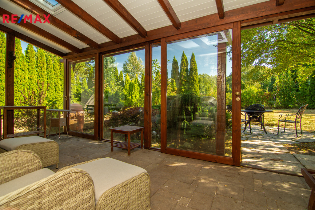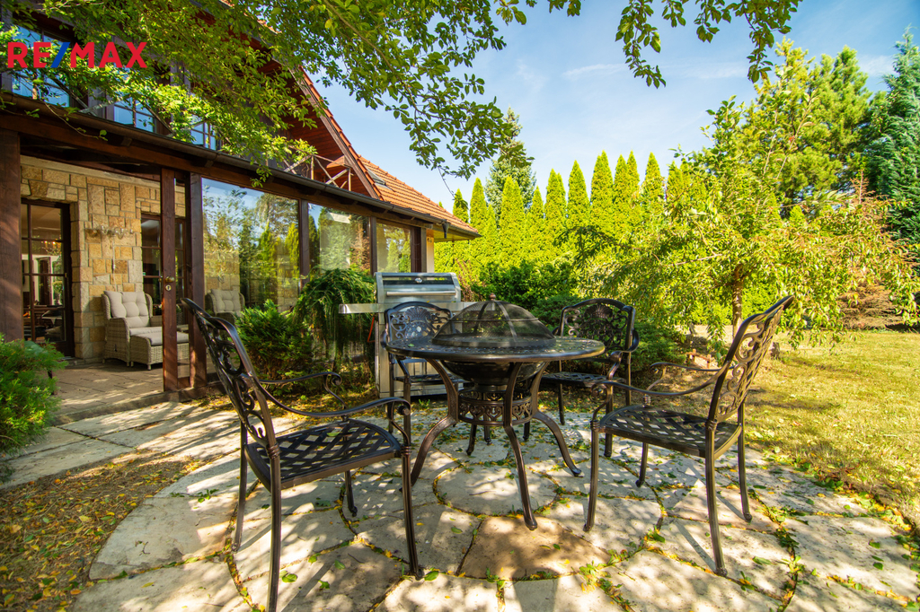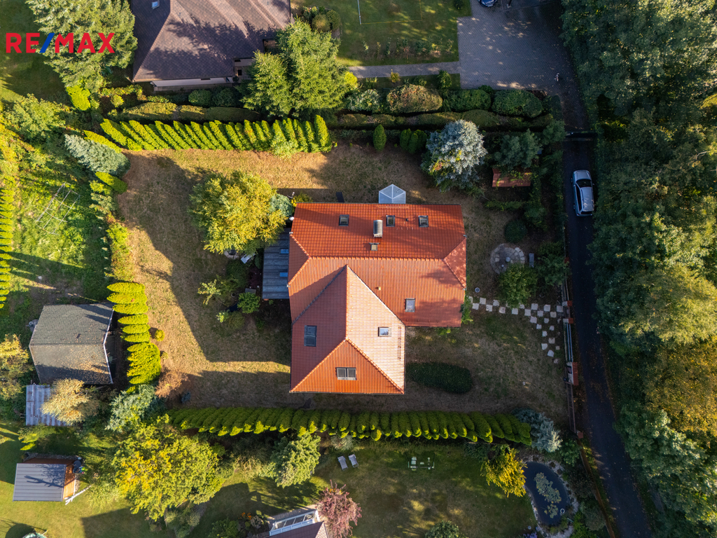 Exteriér domu doplňuje zahrada, která potřebuje malou péči, ale disponuje velkým potenciálem. Na zahradě najdete japonskou zahradu s posezením a oplocený prostor pro vaše čtyřnohé miláčky.
