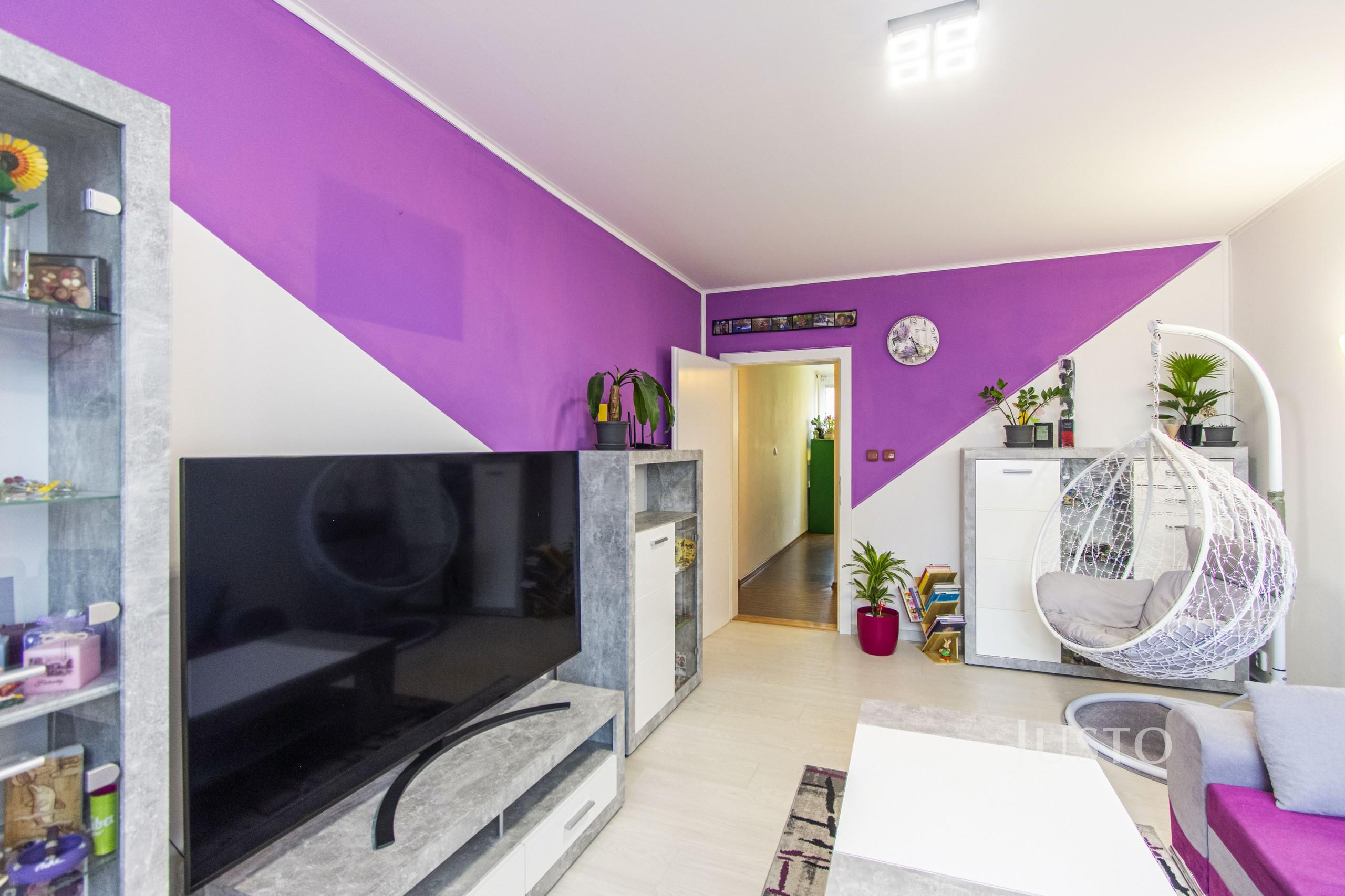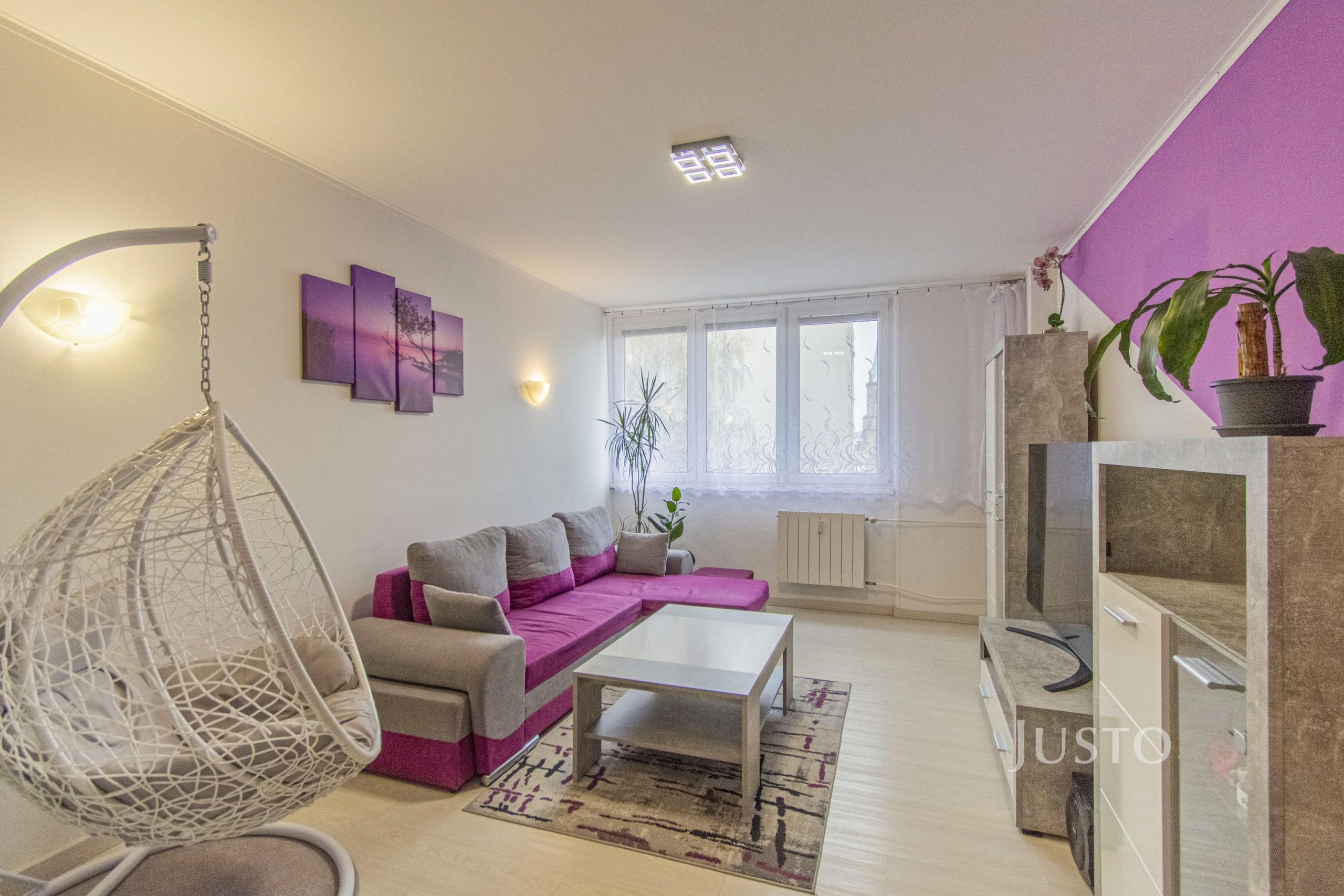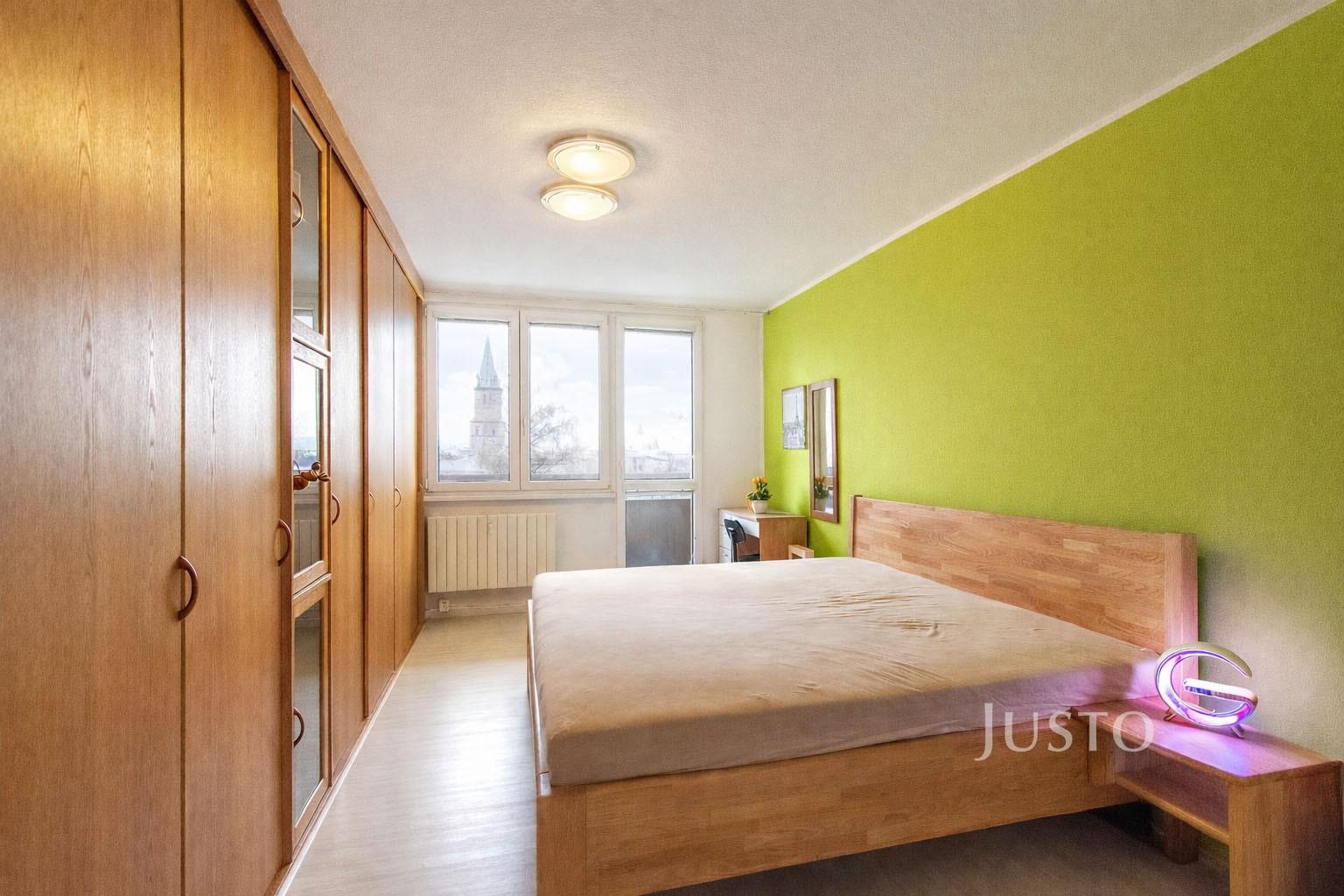 Byt samotný má již vyzděné jádro, koupelna je od toalety oddělena. Obývací pokoj má výměru 18 m², pokoje 18 m² a 15 m². Byt disponuje skvělou uzavíratelnou komorou, ve které jsou policové až po strop a díky nim je v této místnosti spousta úložného prostoru. Kuchyně (12 m²) je vybavena linkou na míru, vestavnou myčkou, digestoří, plynovým sporákem a troubou. O ostatních spotřebičích je možno jednat, zda v bytě zůstanou či nikoliv. V jednom z pokojů ale určitě zůstane vestavná skříň, která je po celé délce pokoje.