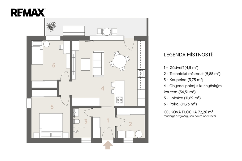 - Užitná plocha: 72 m²