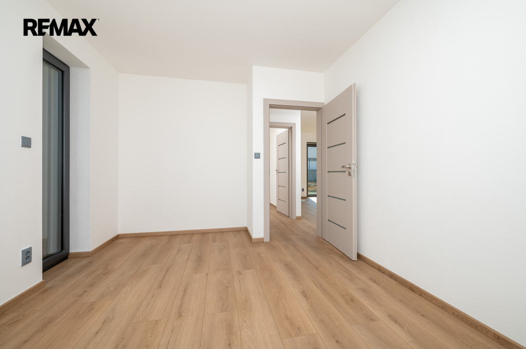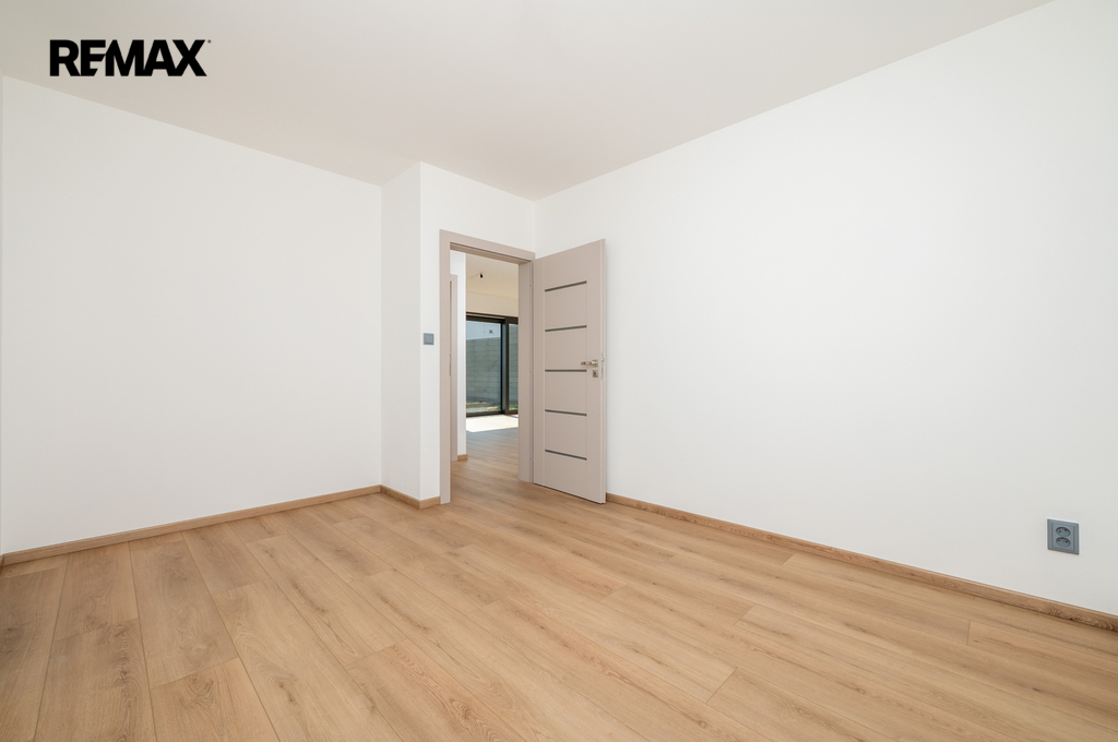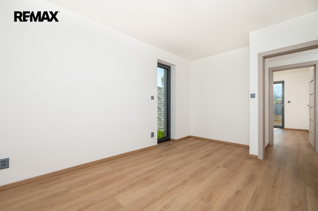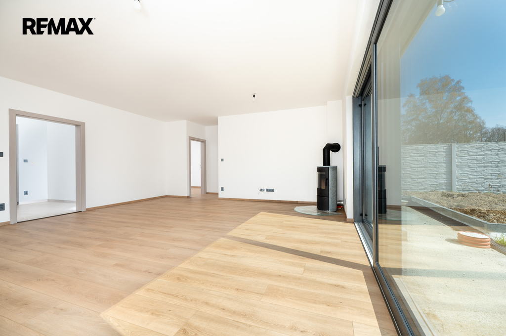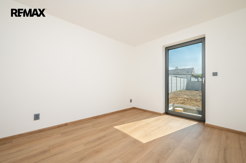 Dispoziční rodinného domu je praktické a funkční. Po vstupu do domu se nachází zádveří (4,5 m²), ze kterého je přístup do koupelny (3,75 m²), technické místnosti (5,88 m²) a hlavního obytného prostoru. Ten tvoří obývací pokoj s kuchyňským koutem (34,51 m²), odkud je dále vstup do ložnice 11,89 m²) a samostatného pokoje 11,73 m²). Z obývací části je přímý vstup na terasu přes francouzská okna, která zajišťují dostatek denního světla a propojení interiéru se zahradou.