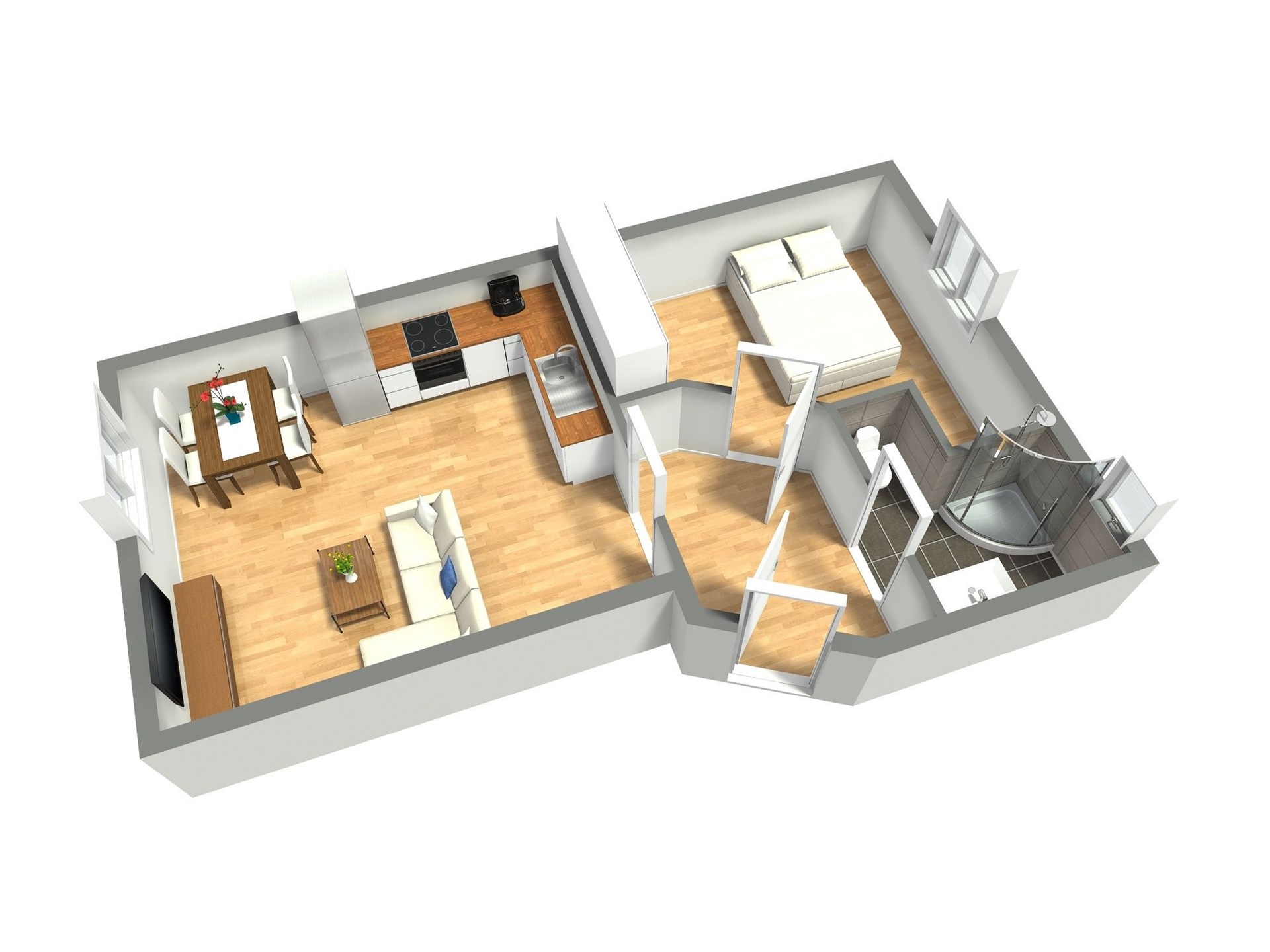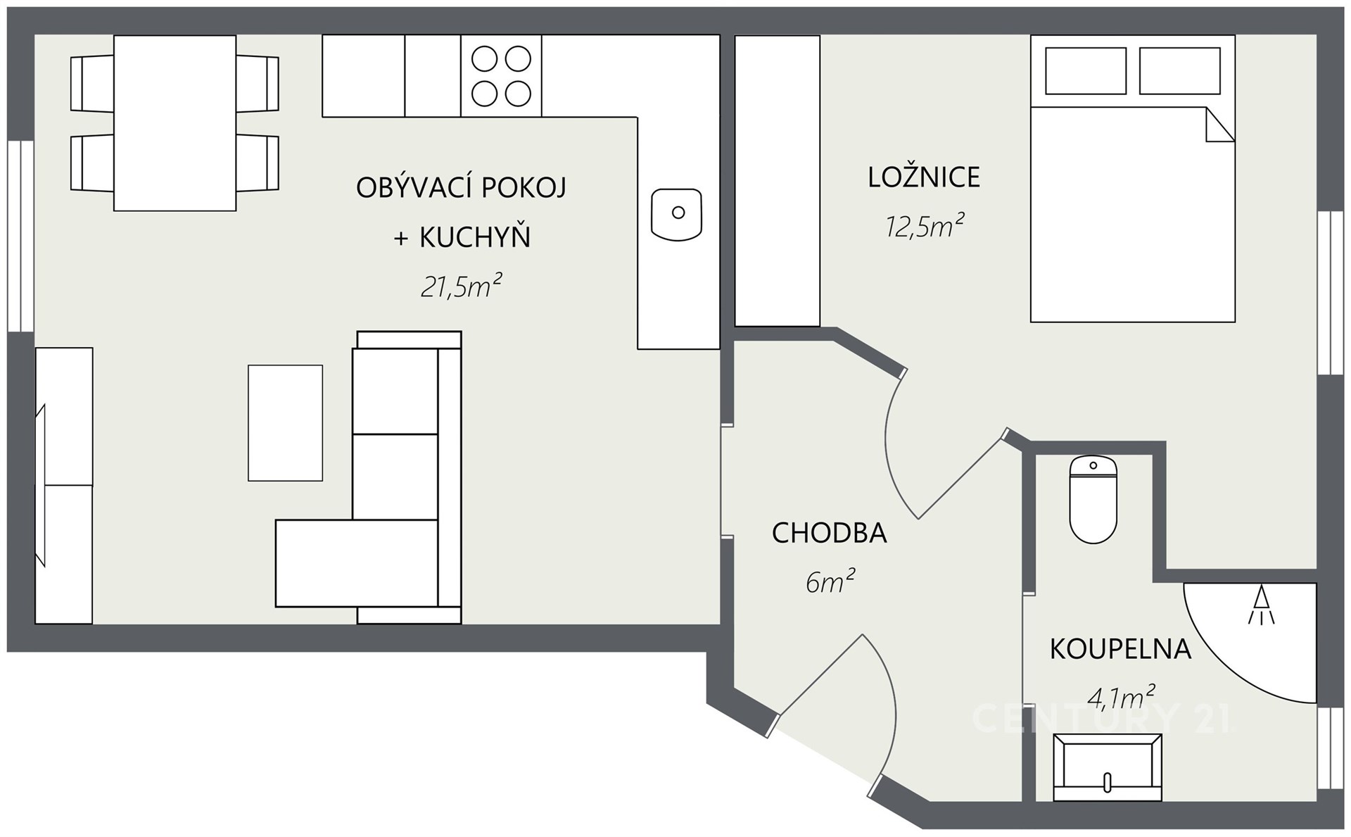 - Celková podlahová plocha: 44 m²