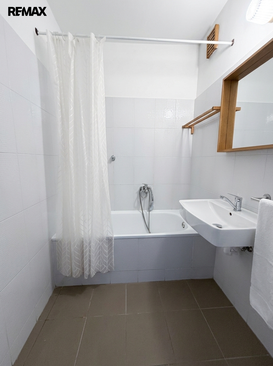 Velkou výhodou bytu je prostorná lodžie, která poskytuje dostatek místa pro posezení a relax. Byt disponuje samostatnou kuchyní s kuchyňskou linkou, troubou a plynovou varnou deskou, dále koupelnou s vanou, umyvadlem a dostatkem prostoru.