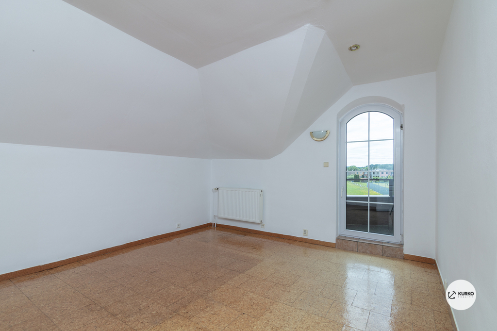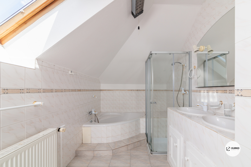 Následující mezipatro pak nabízí další dvě ložnice, koupelnu vybavenou vanou i sprchovým koutem a samostatné WC.