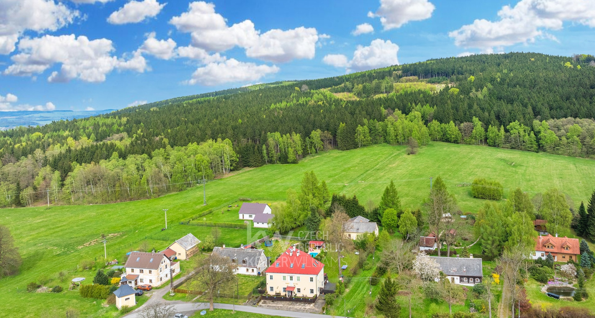 Původní objekt sloužil obci v minulosti jako škola. Současní majitelé dokončili kompletní rekonstrukci stavby v r. 2021 a od této doby zde provozují rodinný penzion, který má svoji pravidelnou klientelu. V současné době ubytování disponuje 16ti lůžky - 3 apartmány a 2 pokoji se svým sociálním zařízením, které se nacházejí ve 2.NP a podkroví (apartmány). Je zde kapacita pro navýšení počtu lůžek. Podkrovní apartmány jsou řešeny jako mezonety ( 2 lůžka jsou vždy umístěna v podkroví). V přízemí domu je velká společenská místnost/jídelna s krbovými kamny, kde jsou podávány snídaně a návštěvníci penzionu si zde mohou posedět u krbových kamen. Je zde také byt, který obývají provozovatelé penzionu. Zásobování vodou je řešeno ze dvou studní, umístěných na pozemku, odpady jsou řešeny septikem, dům je vytápěn kotlem na pevná paliva (pelety se zásobníkem).