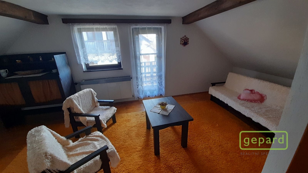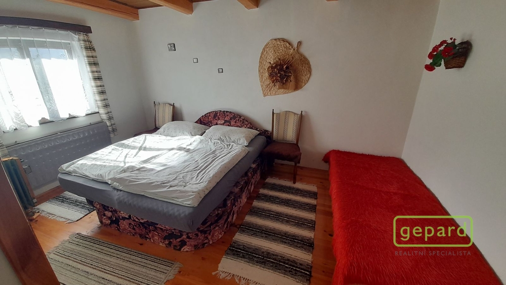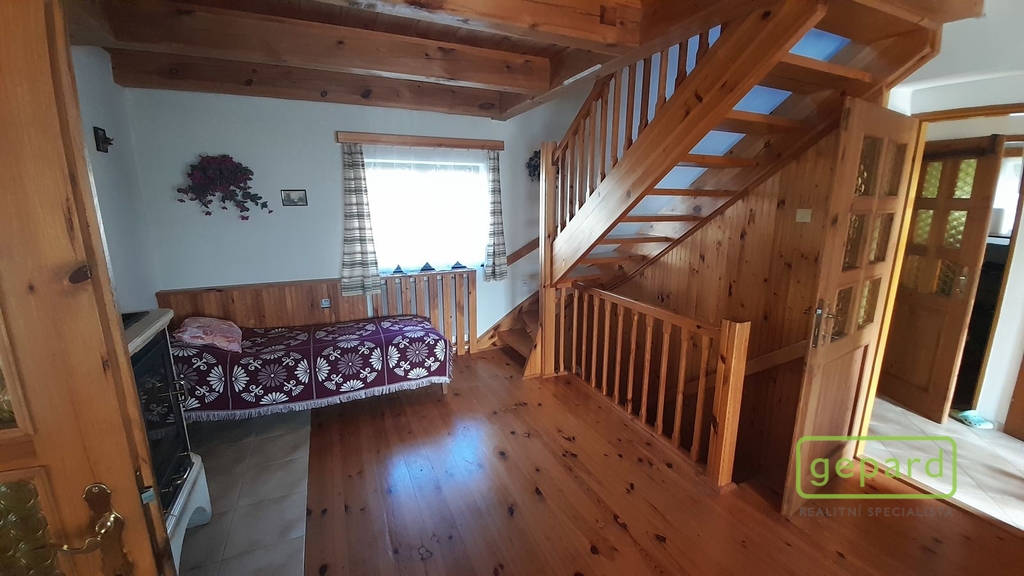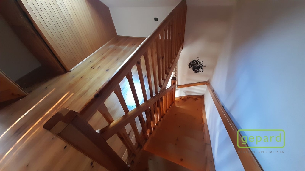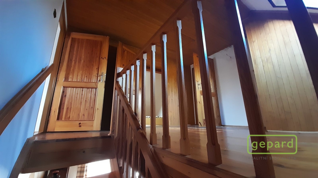 Výstupem po dřevěném schodišti se dostaneme od 3.NP, podkroví, se dvěma ložnicemi a jedním malým pokojíkem.