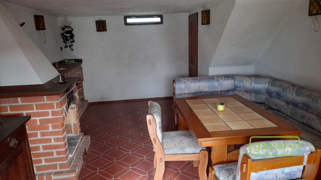 Sklepní část tvoří prostorná garáž, velká klubovna s krbem a technické zázemí včetně uhelny s kotlem na tuhá paliva.
