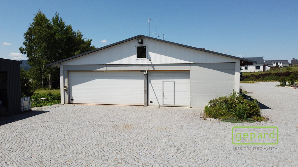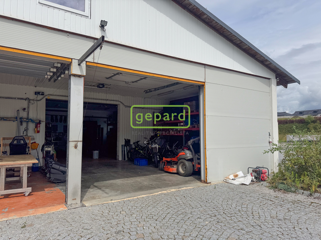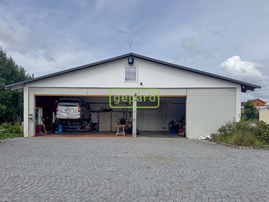 V rámci této nabídky je dále stavba venovní pelchové garáže pro dvě vozidla, další parkovací místa jsou ze zadní strany stavby v rámci velkého otevřeného prostoru, který je využíván jako sklad, dílna a parkování.