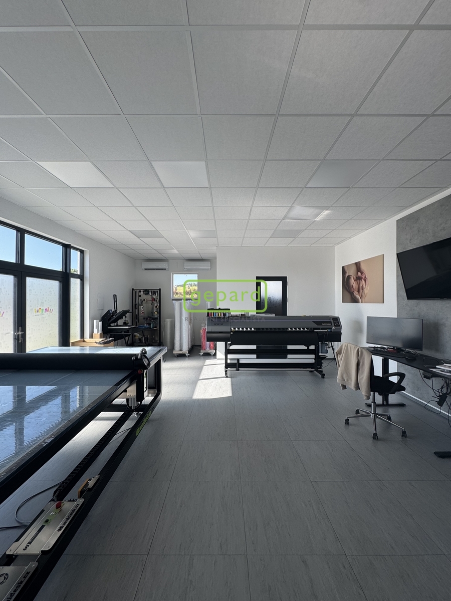 Stavba nabízí kancelářské a výrobní prostory, dále skladovací prostory, garáž a malou bytovou jednotku + možnost zřízení druhé bytové jednotky. Díky příčkám je možné jednoduchým způsobem měnit uspořádání stavby a přizpůsobit si jí vlastnímu záměru.