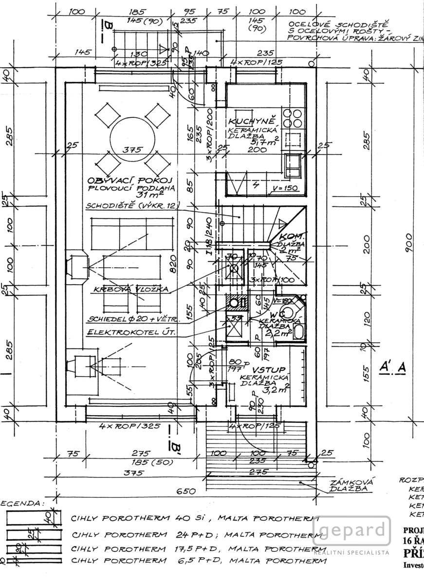 1/ Přízemí: zádveří, WC, obývací pokoj s jídelnou, kuchyně.