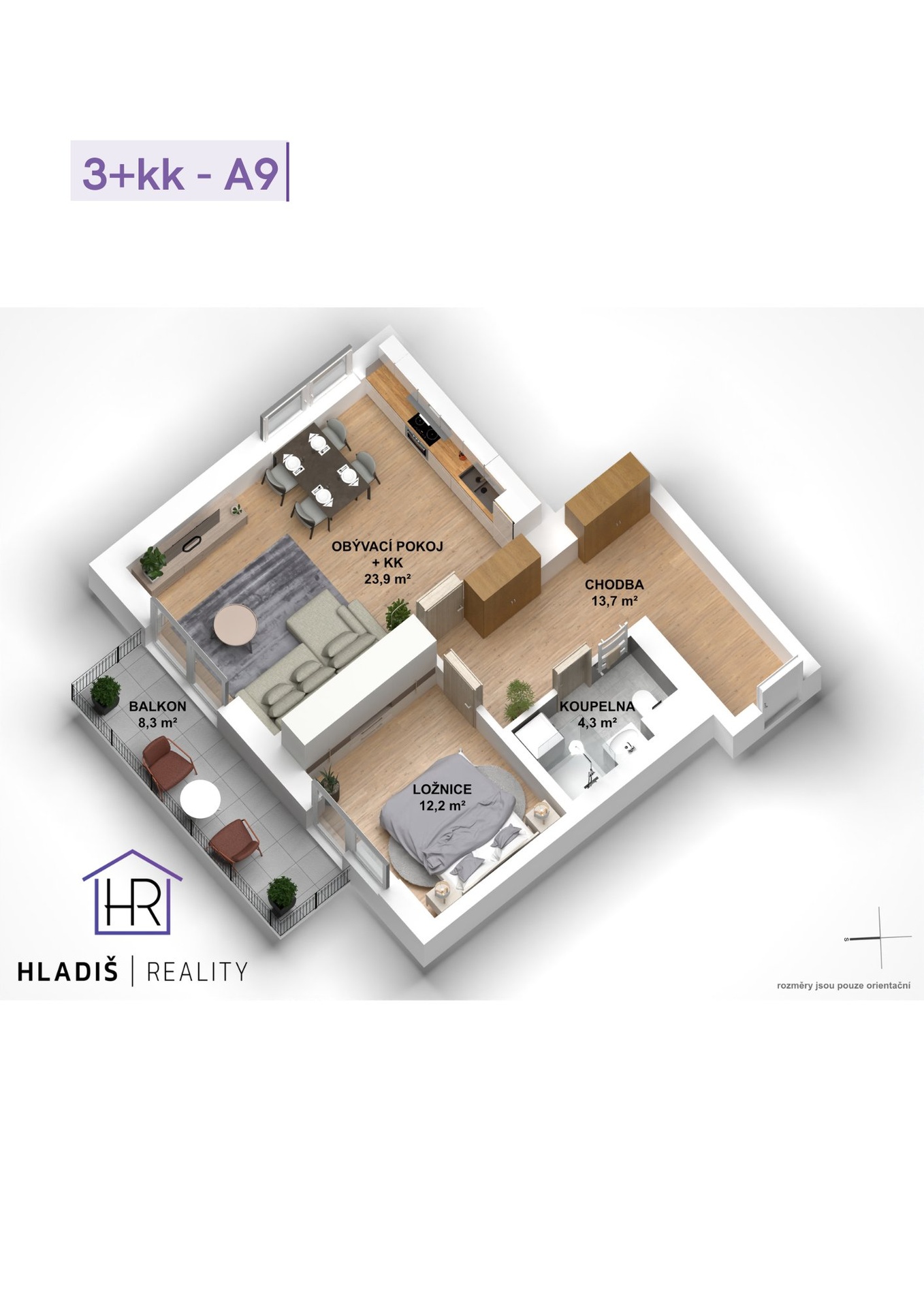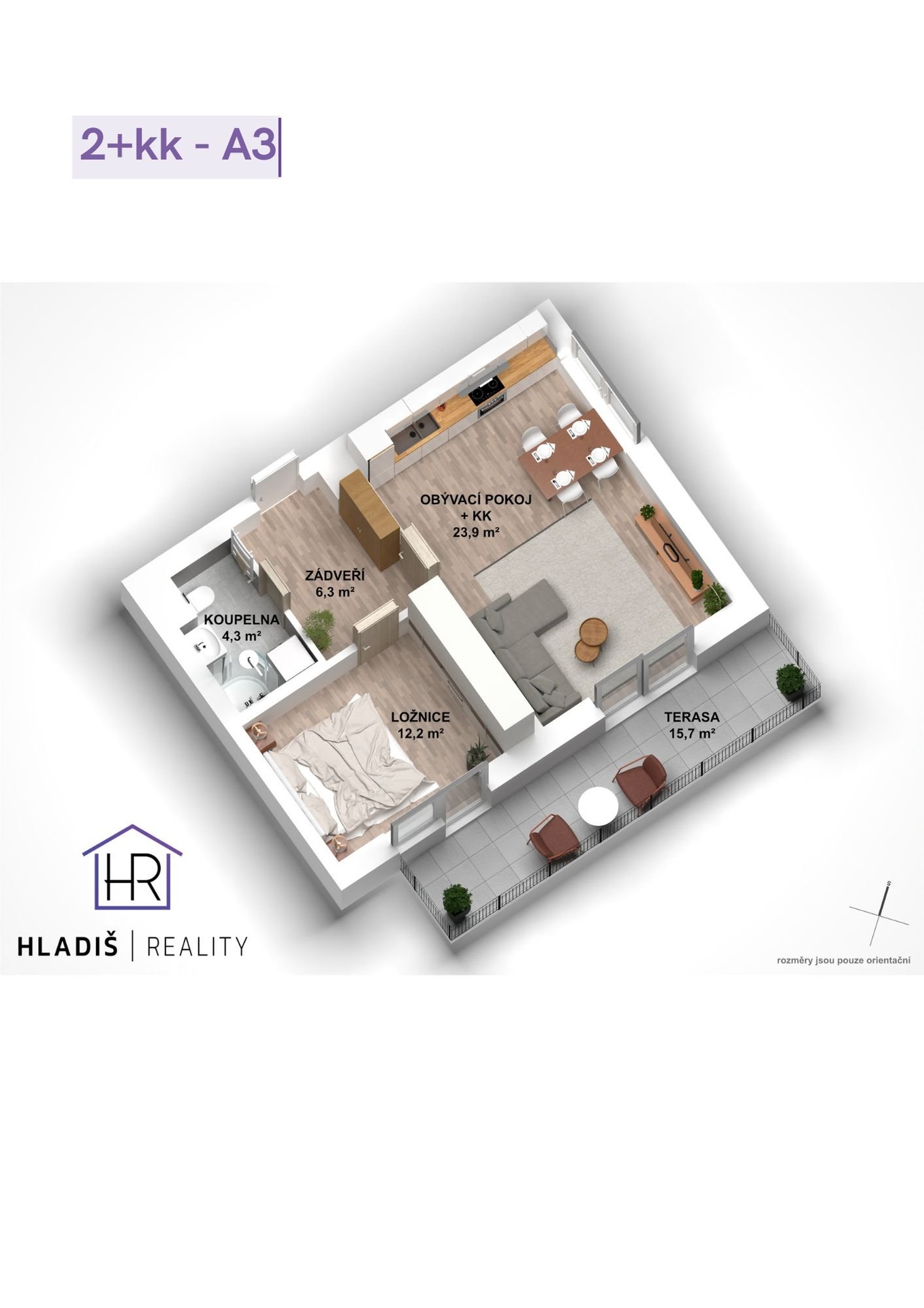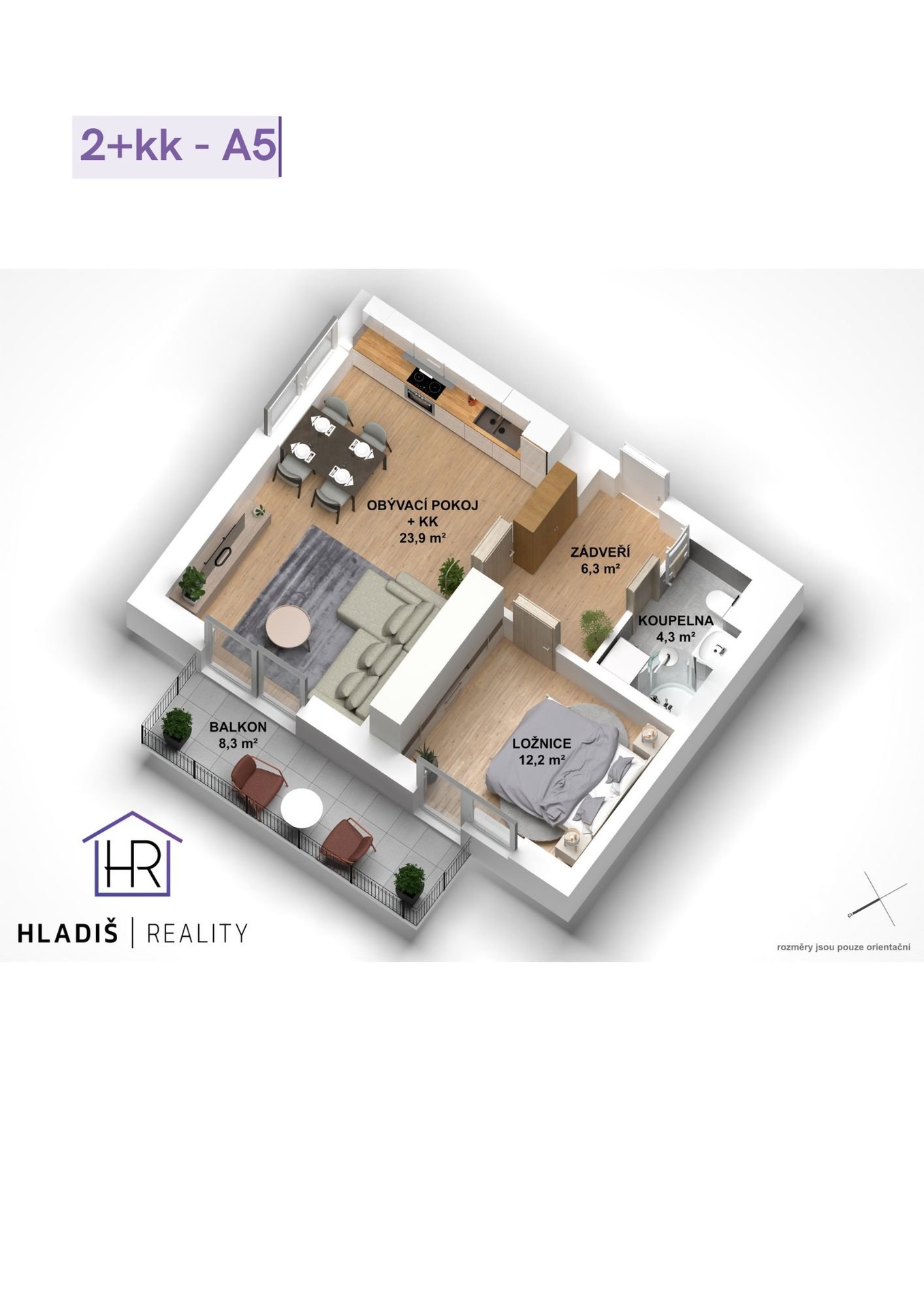 - Dispozice bytu: 2+kk