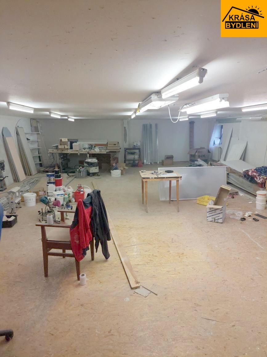 Pronájem komerčního prostoru v samostatně stojícím zděném objektu s rampou a možností parkování pro cca 10-ti aut. Zastavěná plocha a nádvoří 844 m2. Střecha sedlová - plech. Voda a kanalizace obecní. Topení ÚT - plynový kotel. Podlahy - dlažba, OSB desky, plovoucí podlahy. Prostory se nachází ve 2. NP - komerční prostor, 3 kanceláře, sociální zázemí. Nemovitost je vhodná jako sídlo firmy, kanceláře, sklad, apod.. Volný od 15. 01. 2026. Strategicky dobré místo pro napojení na dálnici. Měsíční nájemné 65.000,- Kč + inkaso.