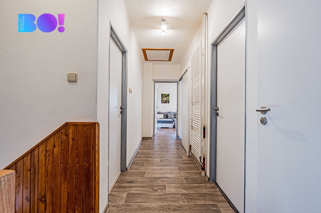 Umístění domu je na krásném výhledovém a klidovém místě (slepá ulice). Dům je vytápěný tepelným čerpadlem s možností topení tuhými palivy a také plynem, který je na hranici pozemku. Zahrada je celooplocená.