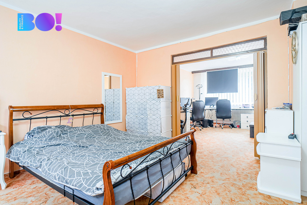 Chodba, koupelna, špajz, kuchyně, obývací pokoj s přístupem na balkon, ložnice