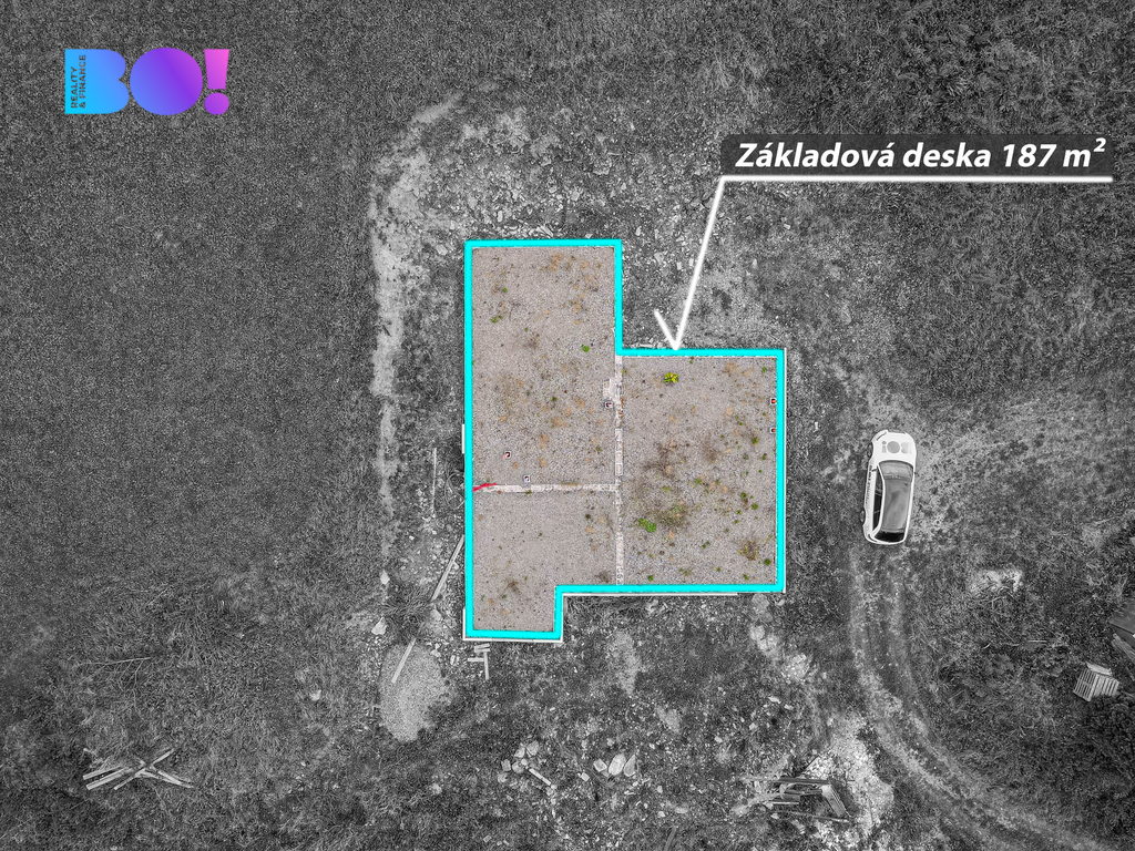 Rozpracovaný základ pro rodinný dům o velikosti cca 187 m² – připravený a ihned k využití.