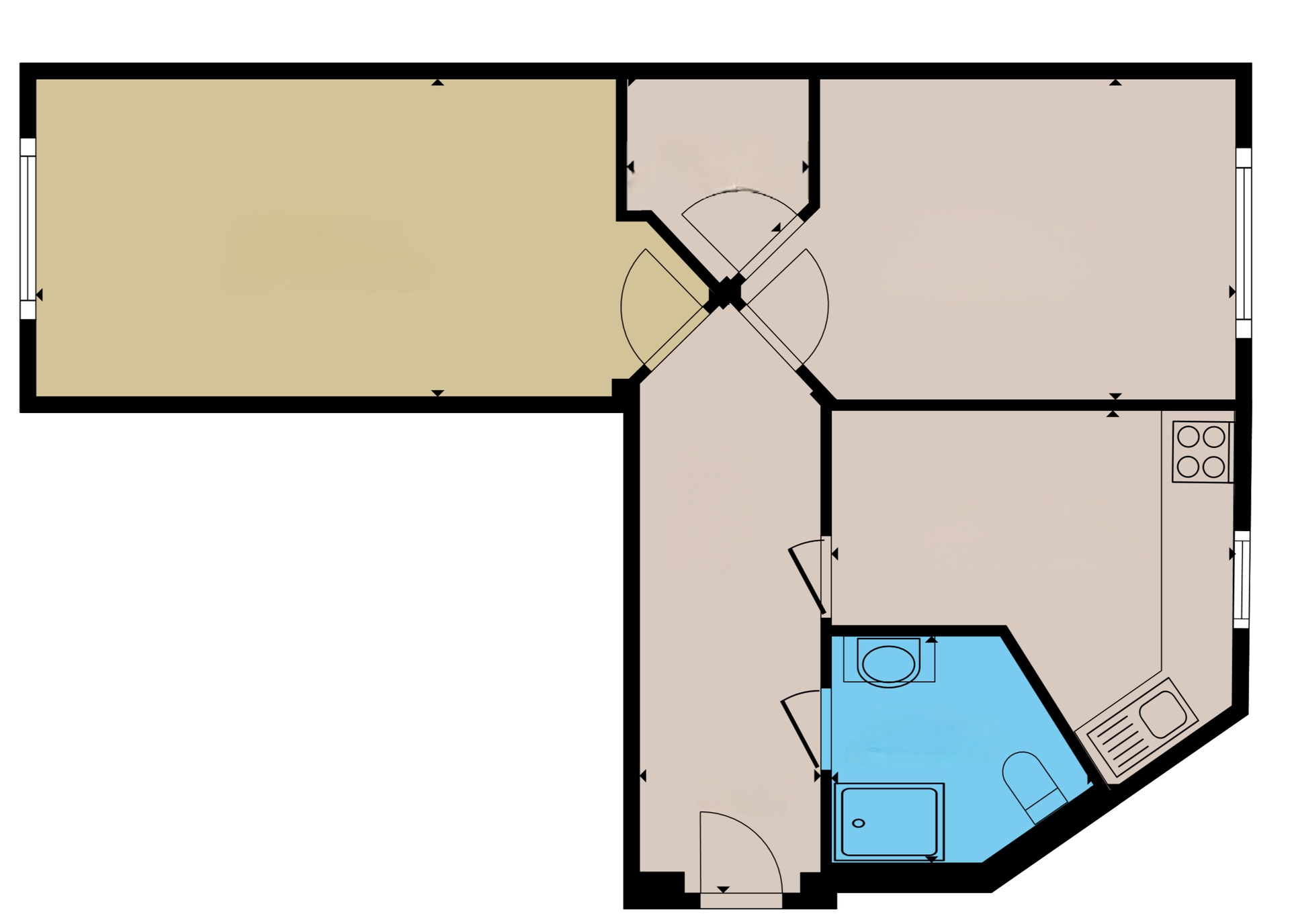 Byt má velmi praktické uspořádání – dva samostatné, neprůchozí pokoje, jeden s výhledem do ulice, druhý orientovaný do vnitrobloku k parkovacím místům. V jednom z pokojů je navíc vybudována prostorná šatna. Samostatná kuchyně nabízí dostatek místa pro jídelní kout. Koupelna je po rekonstrukci a je spojená s toaletou.