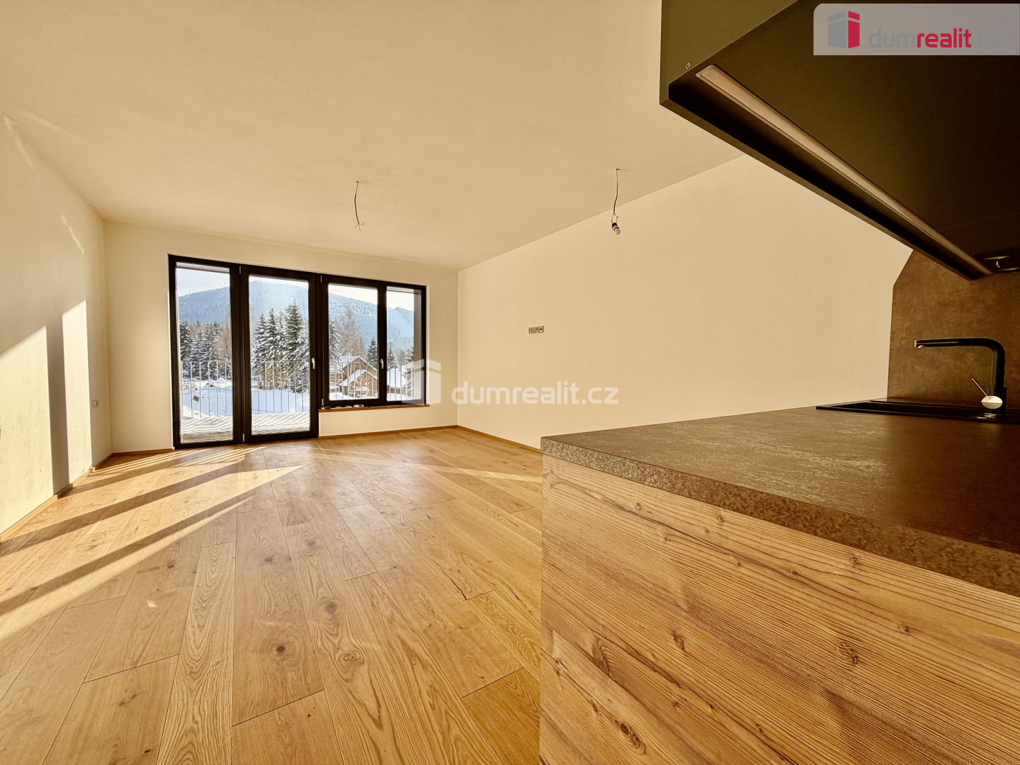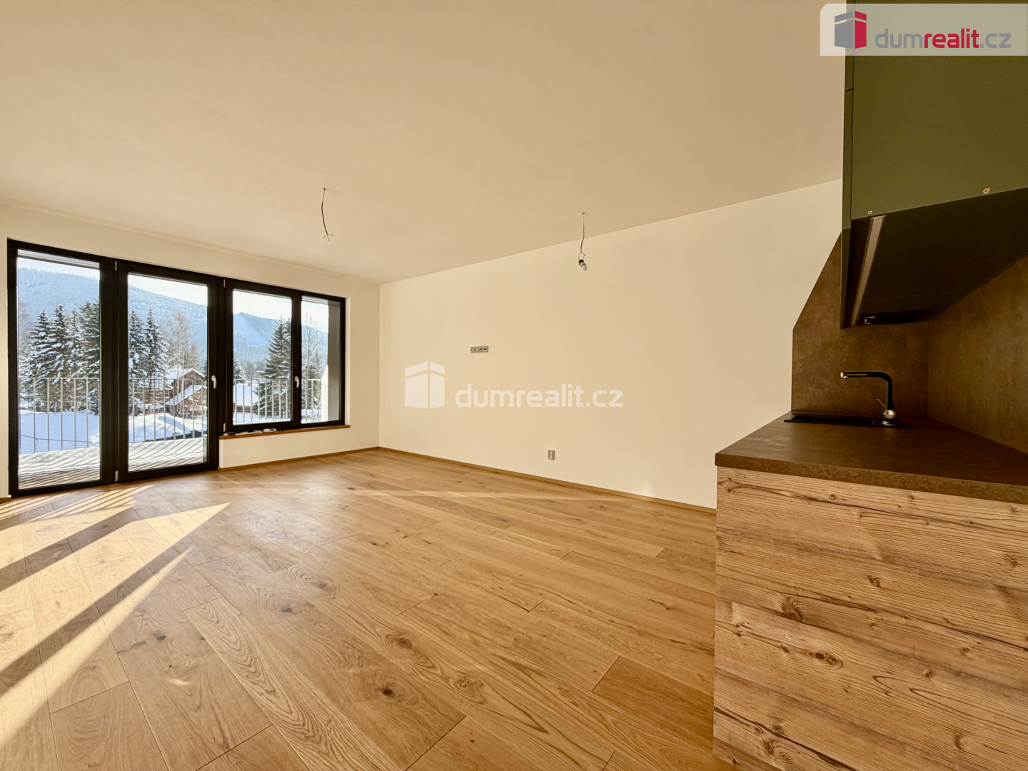Pronájem světlého apartmánu 1+1 s šatnou a terasou – Vitality Residence, Harrachov (44 m² + terasa 8,5 m²)
