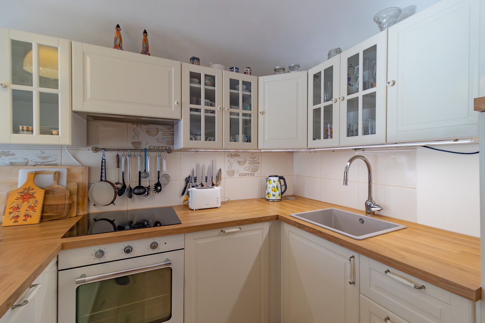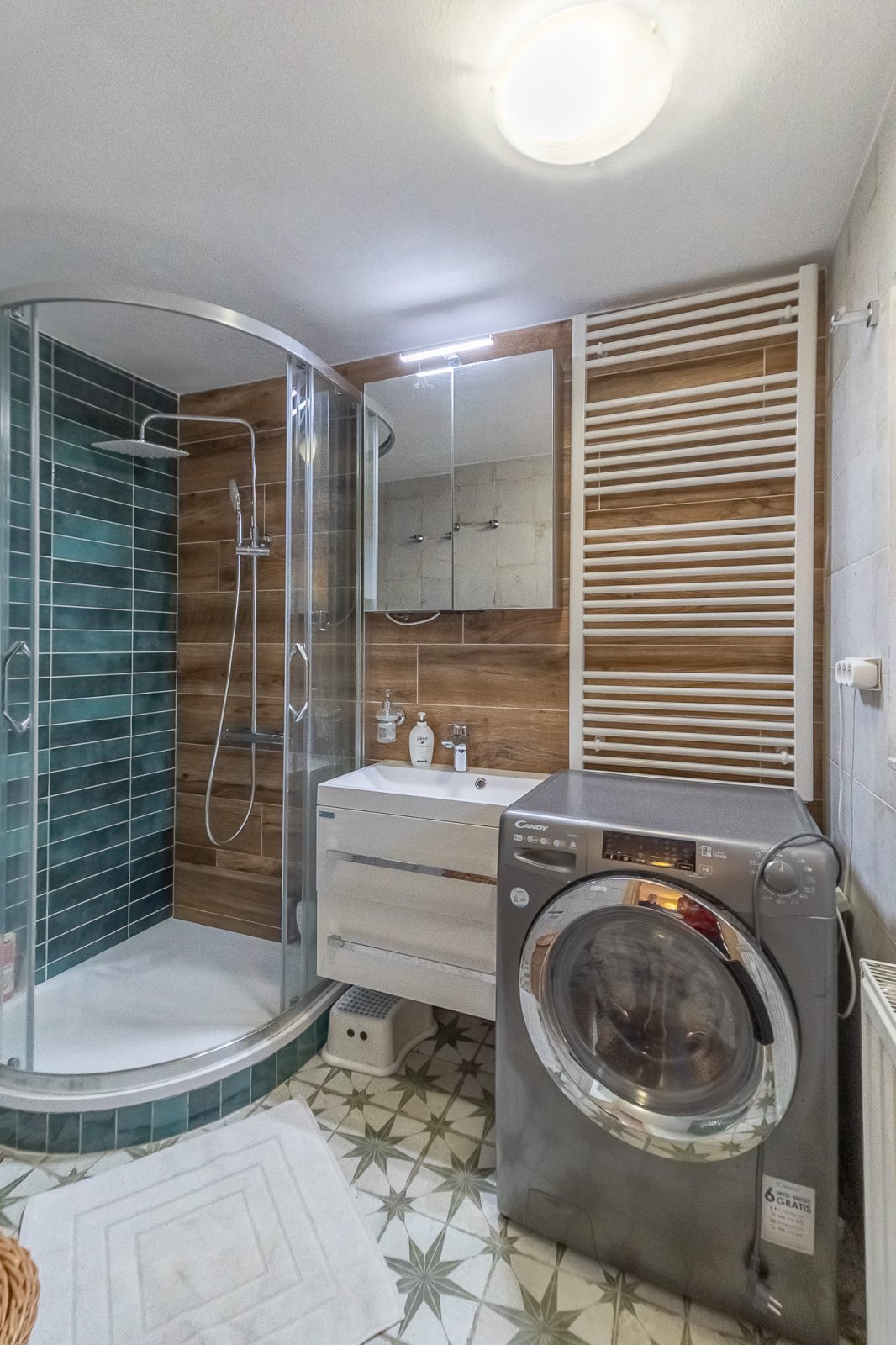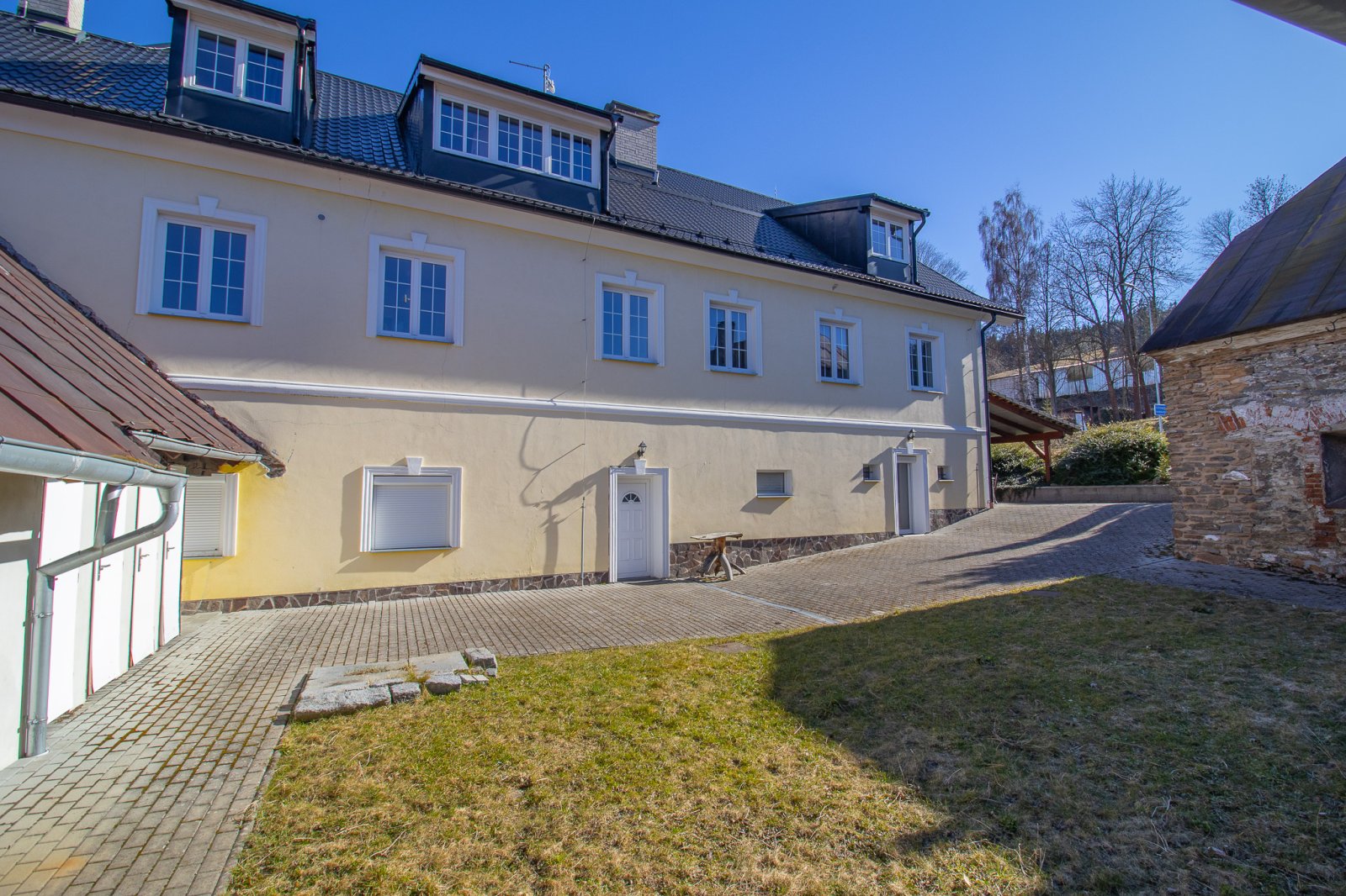 Tento apartmán byl nově rekonstruován před dvěma roky. Plně vybavený apartmán/byt nabízí vše, co potřebujete pro Vaše pohodlí a příjemné bydlení, proto jej lze využít jak k trvalému bydlení, tak pro vlastní víkendové – rekreační využití. Vnitřní dispozice 2+kk o podlahové ploše 52m2 v 1. NP: „Srdcem bytu je obývací prostor s kuchyňským koutem. Stávající předělení úložnými skříněmi nabízí praktické řešení, které lze však snadno odstranit a získat tak velkorysý, otevřený interiér.“ Součástí ložnice je i bezbariérový vstup do vnitrobloku, což interiéru dodává vzdušnost a klid. Moderně obložená koupelna (se sprchovým koutem, umyvadlem, topným žebříkem a připojením k pračce) WC. V bytě jsou plastová okna, nová podlahová krytina.
