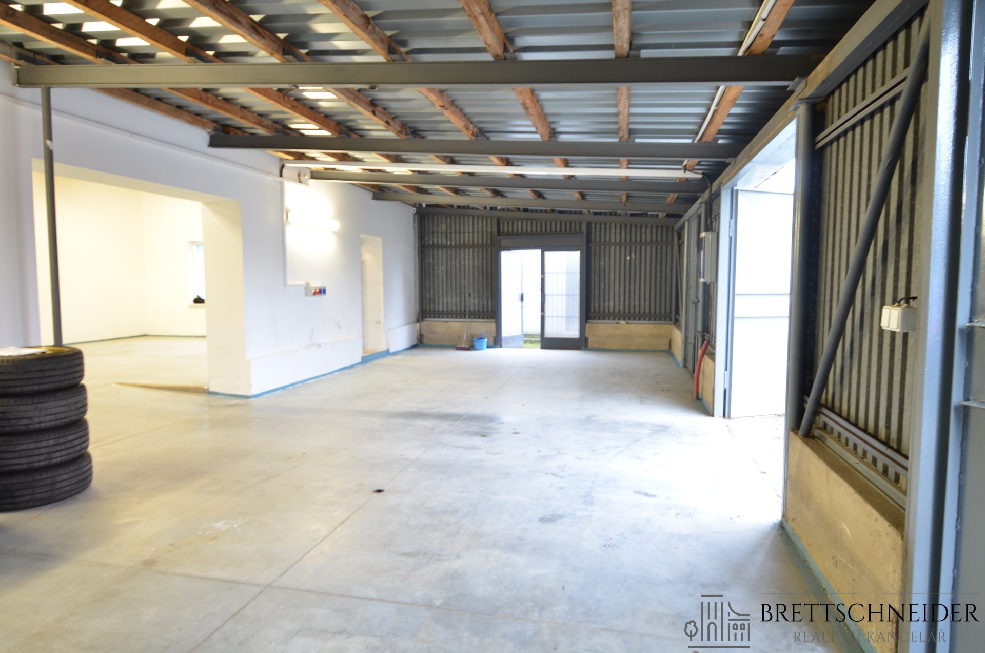 Vjezd je možný přes garážová vrata. Prostor není vytápěný a není vybaven sociálním zařízením.