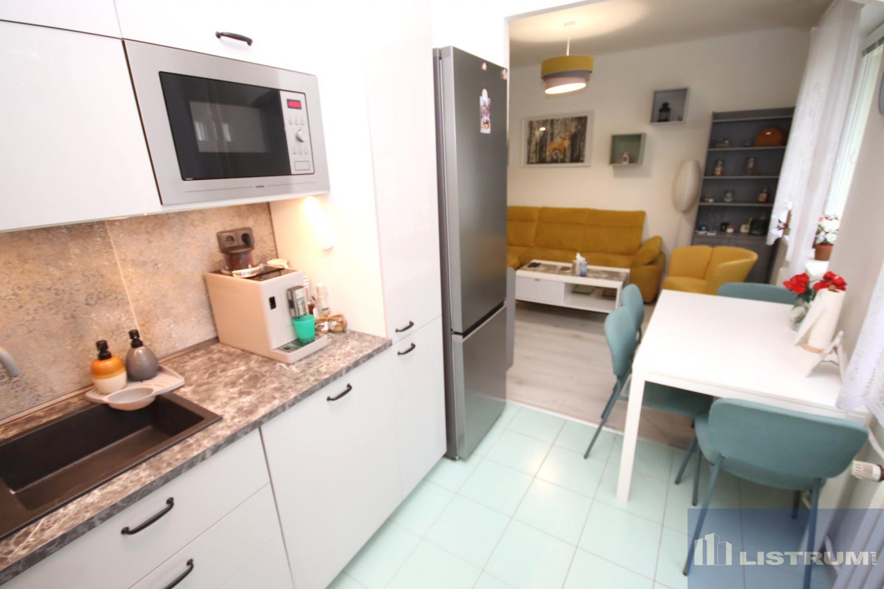 Byt prošel před 4 lety kompletní rekonstrukcí, v jejímž rámci bylo provedeno zejména: změna dispozice propojením obývacího pokoje a kuchyně, výměna rozvodů elektřiny, kompletní rekonstrukce bytového jádra jeho vyzděním a zvětšení koupelny (sprcha, umyvadlo, místo na pračku a sušičku) + samostatné WC, položení plovoucích podlah, nové interiérové dveře.