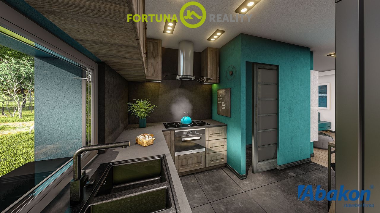 Dům je patrový a nepodsklepený 4 + kk ideální pro úzké stavební parcely. V přízemí domu se nachází 3x ložnice, 1x koupelna se sprchovým koutem, WC a vanou, technická místnost na topení a bojler, obývací pokoj spojen s terasou, kuchyně se spíží a jídelnou.