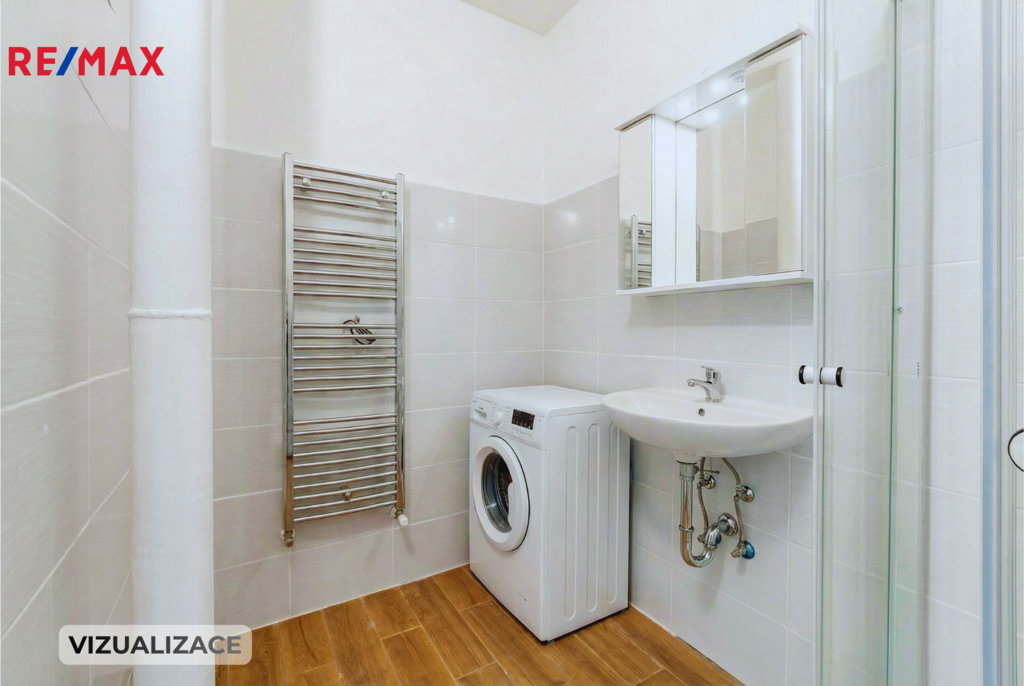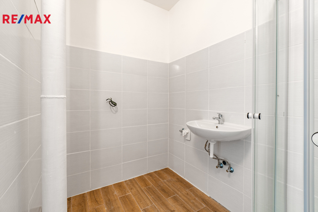 Nové zděné jádro: Koupelna a samostatné WC jsou po rekonstrukci včetně nových rozvodů vody a elektroinstalace v těchto částech. Designové obklady a sanitární technika odpovídají současným standardům.