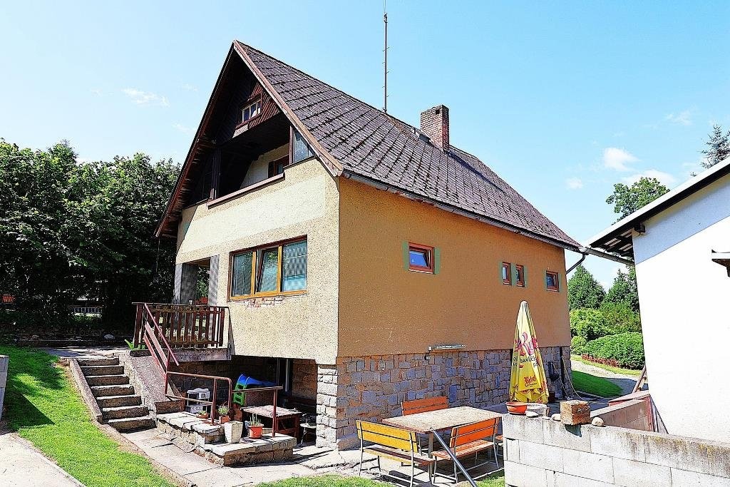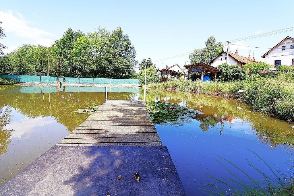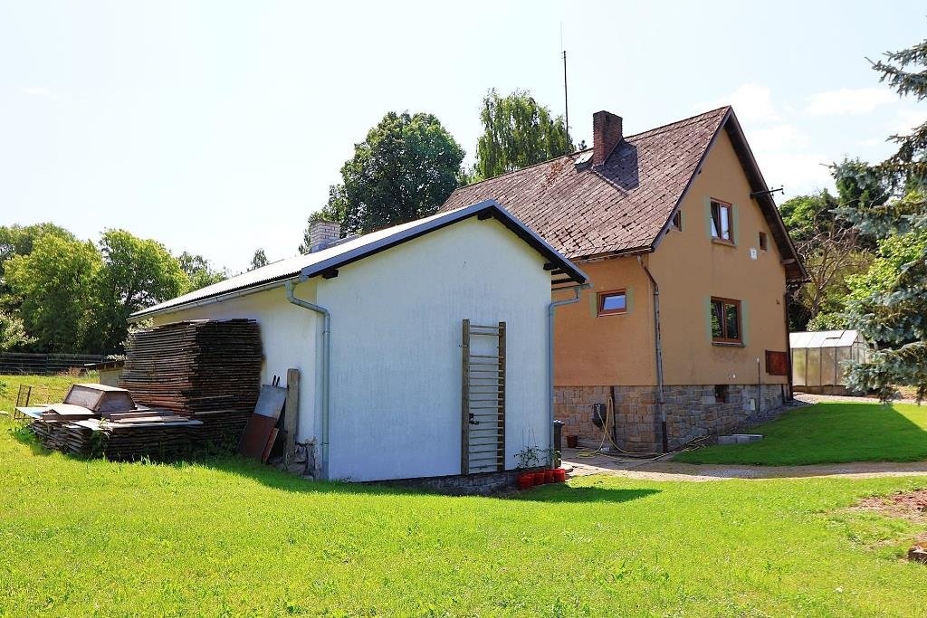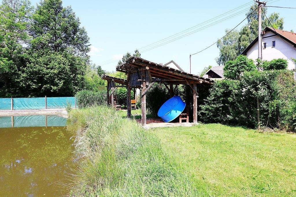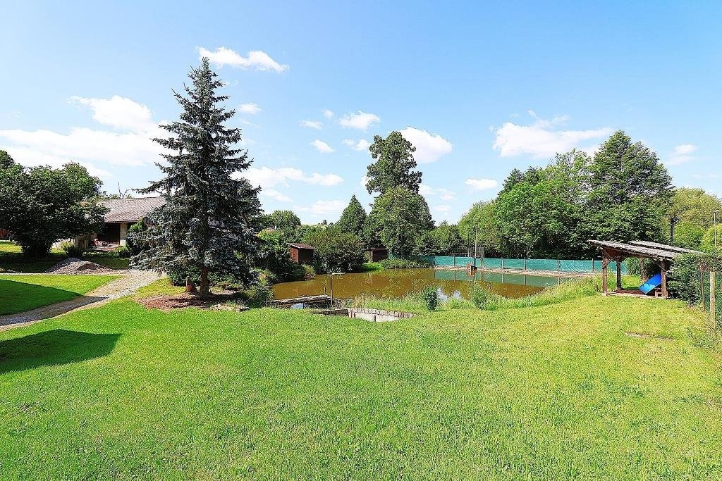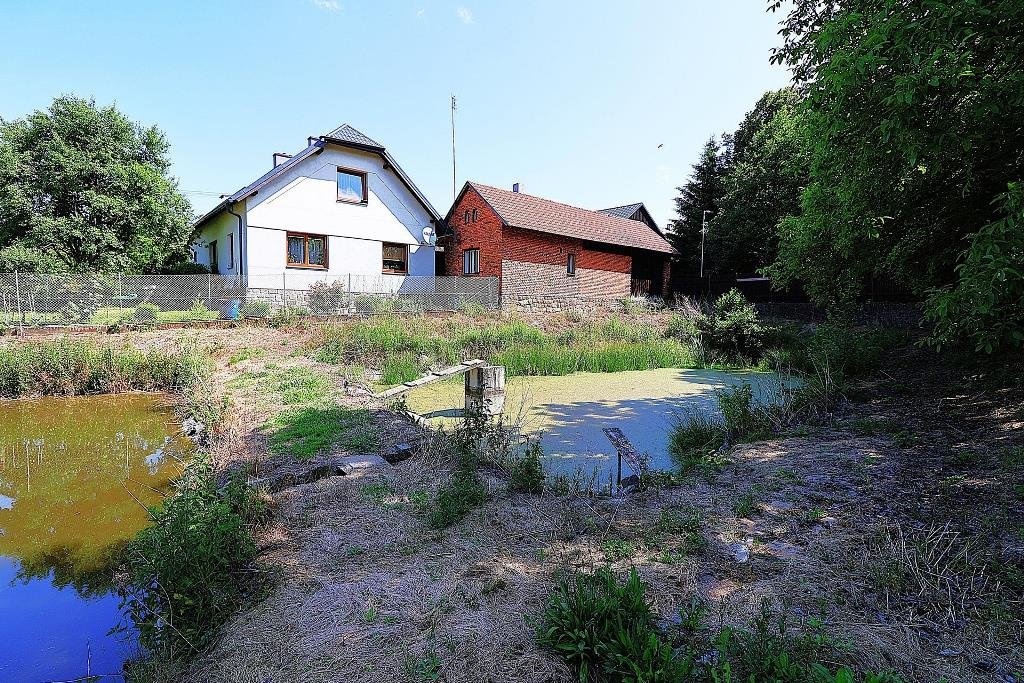 Dům je celopodsklepený a částečně zrekonstruovaný. V přízemí domu je prostorná předsíň, kuchyň spojená s obývacím pokojem, koupelna se sprchovým koutem, samostatné WC, komora. V patře jsou tři pokoje, koupelna s podlahovým topením a WC, lodžie. Ve sklepě domu je společenská místnost pro posezení vybavená kamny, menší kuchyňskou linkou s dřezem, WC, sprchový kout a větší technická místnost, kterou lze využít k uskladnění sezónních věcí. Vedle domu je samostatně stojící budova s garáží a prostory pro malé hospodářství. Dům stojí na pozemku o celkové výměře 4193m2 se třemi kaskádovitě vybudovanými rybníky.