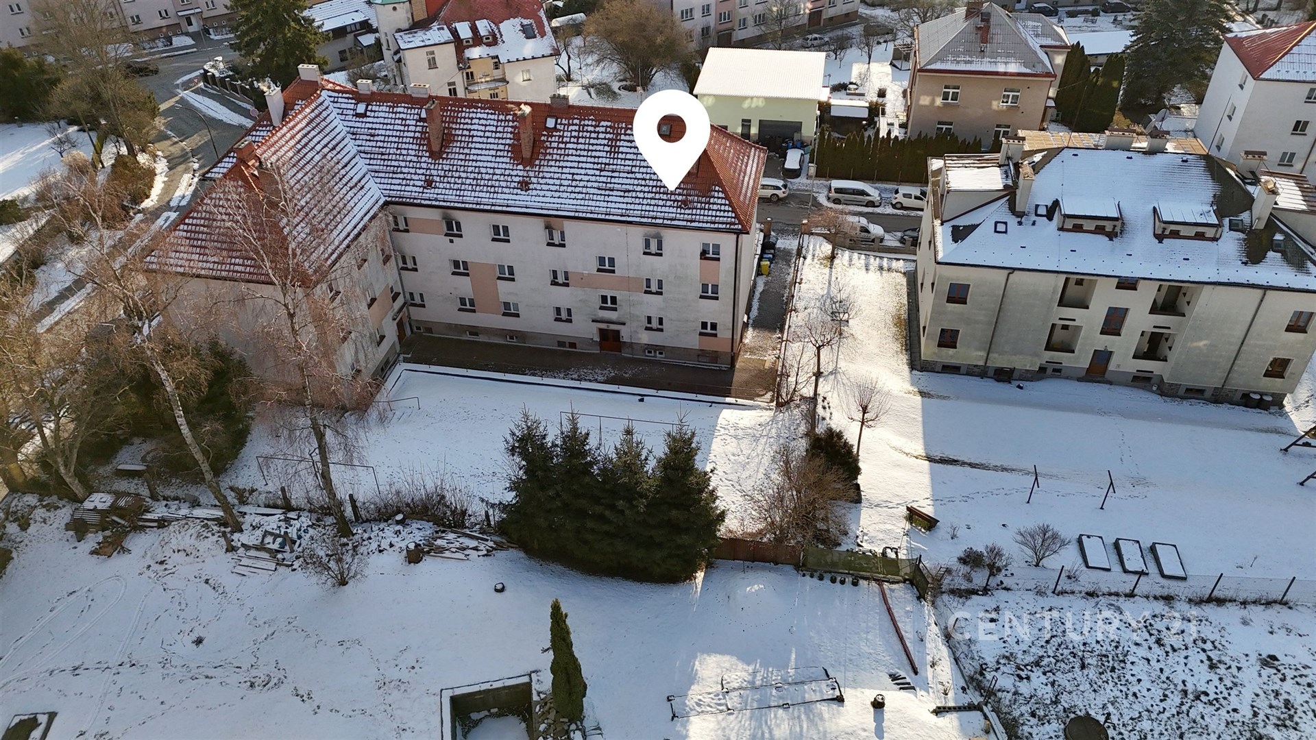 Byt se nachází v zvýšeném přízemí třípatrového domu, což zajistí snadný přístup i pro ty, kdo by preferovali bydlení bez nutnosti častého používání schodů nebo výtahu, jelikož v budově výtah není.
