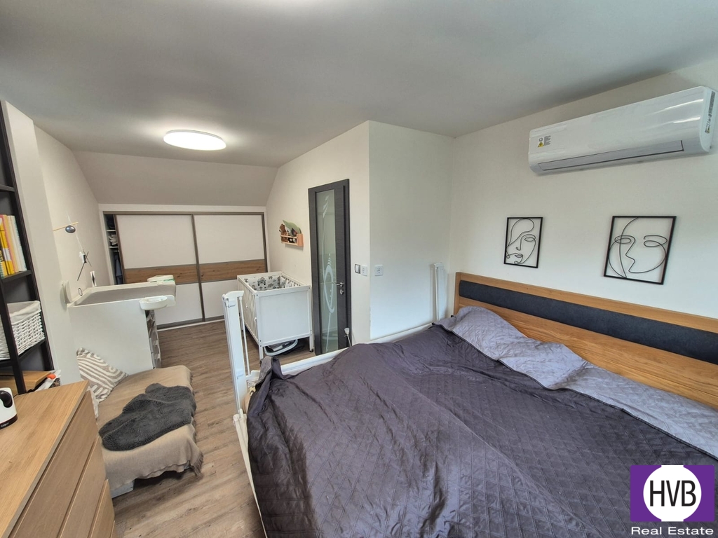 Rezervace. Nabízíme k pronájmu rodinný dům o celkové ploše 122 m2 (včetně zimní zahrady) a pozemkem 347 m2, lokalita Herink. V přízemí domu se nachází předsíň, technická místnost s úložným prostorem, obývací pokoj s kuchyňským koutem z nějž lze vstoupit na zasklenou terasu / obyvatelnou zimní zahradu (cca 16 m2), dále koupelna se sprchovým koutem a toaletou. V prvním patře je koupelna se sprchovým koutem a toaletou a dvě samostatné ložnice, z nichž jedna disponuje vestavěnou skříní. Nízké provozní náklady, podlahové vytápění tepelným čerpadlem, alternativně akumulační krbová kamna. Na zahradě se nachází zahradní domek s úložným prostorem. Do domu je přivedena voda z obecního řadu, ohřev řešen elektrickým bojlerem, kanalizační jímka v zemi, 2x parkování na pozemku, 3x možnost před pozemkem. V každé místnosti klimatizace (možnost ochlazení či topení). Ohledně doplňujících informací, či zájmu o prohlídku mě neváhejte kontaktovat.