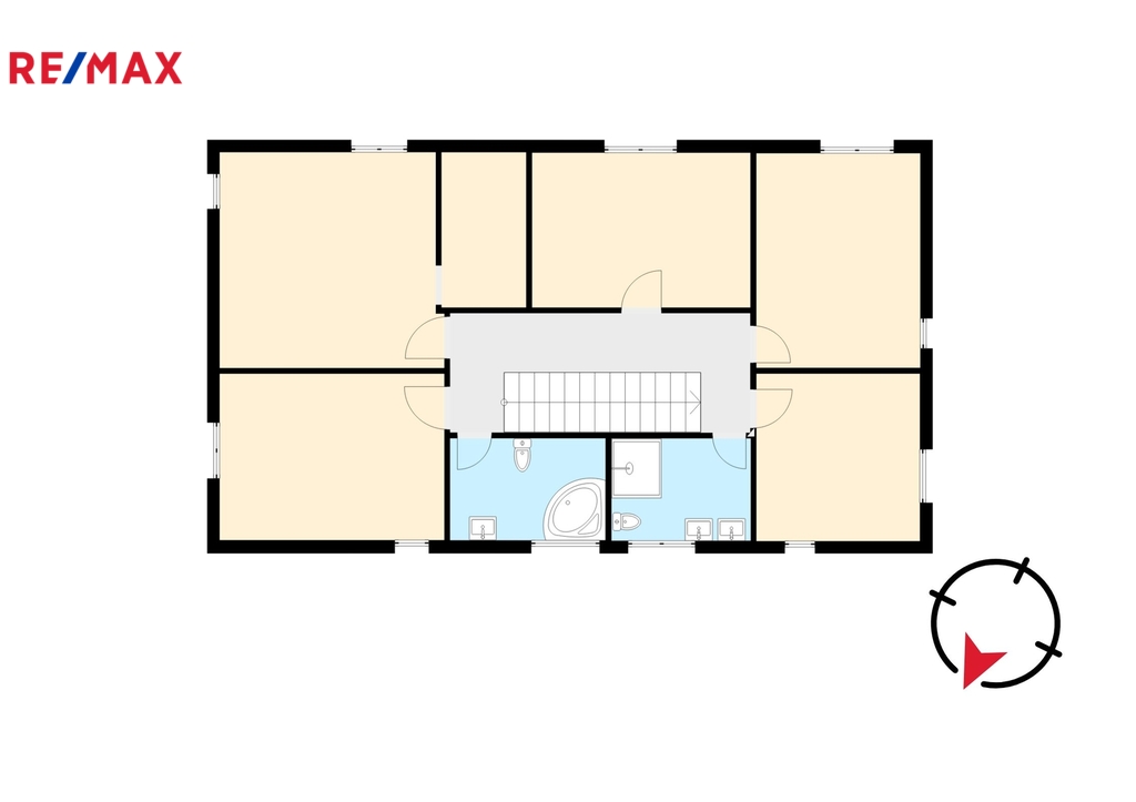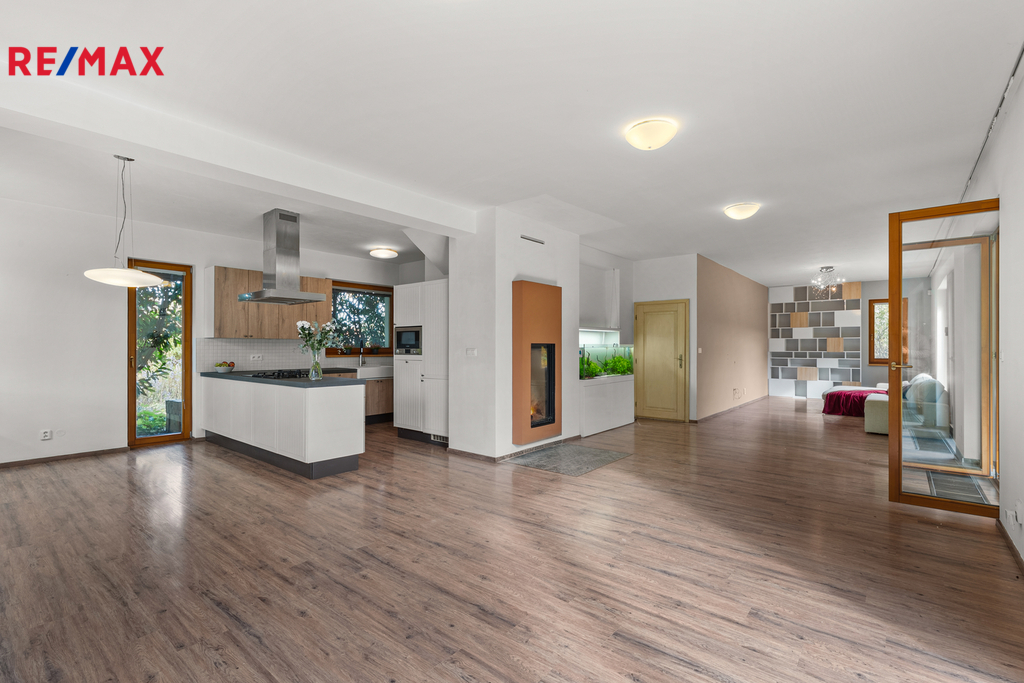- dispozice 6+1 – obývací pokoj, kuchyně a technické zázemí v přízemí, pět ložnic v patře