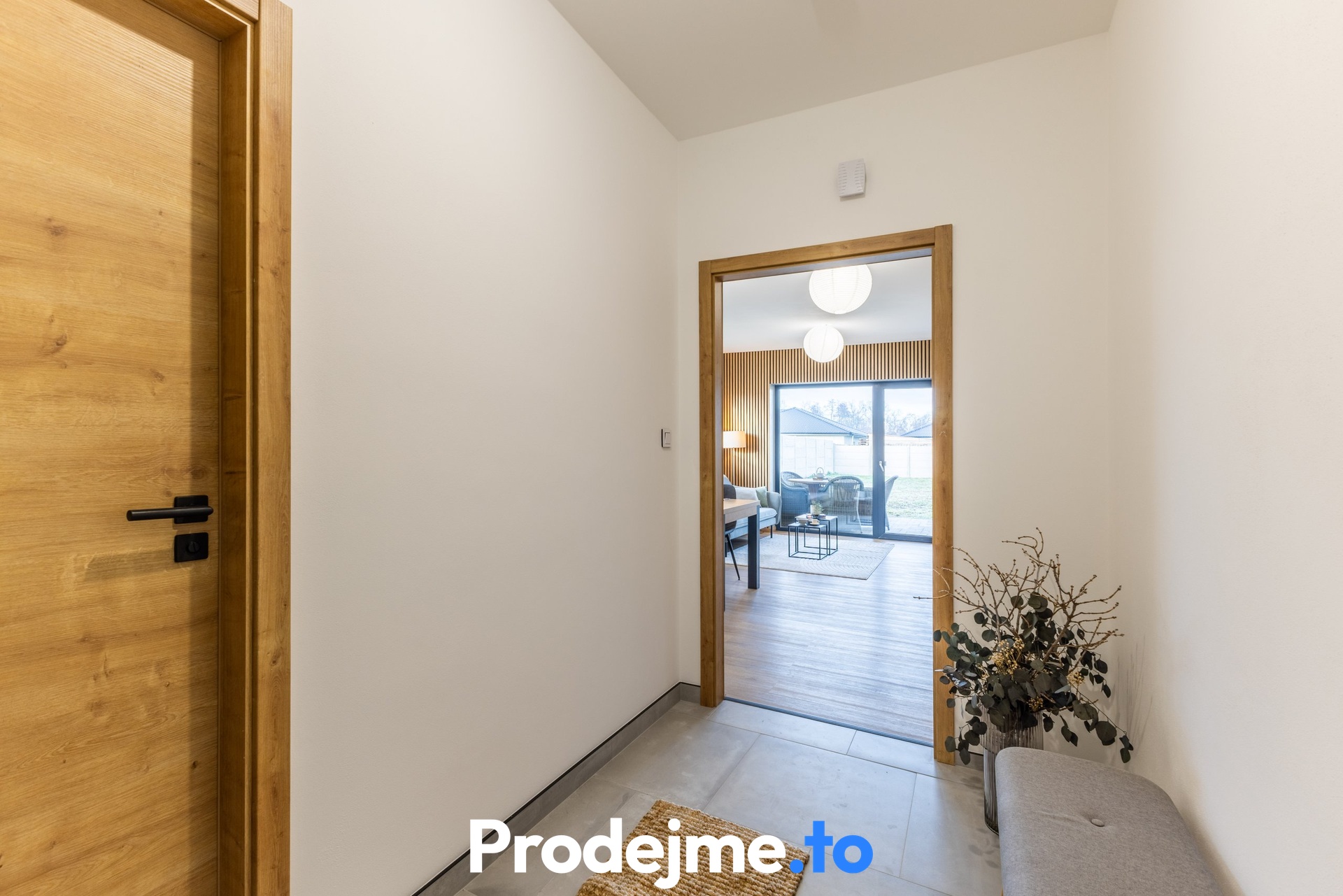 Dům se nachází v klidné ulici v Hevlíně a má dispozici 3+kk o celkové ploše 81 m2 včetně terasy. Už na první pohled zaujme stylovým interiérem, promyšleným řešením prostoru, kvalitním zpracováním a důrazem na úsporný provoz.