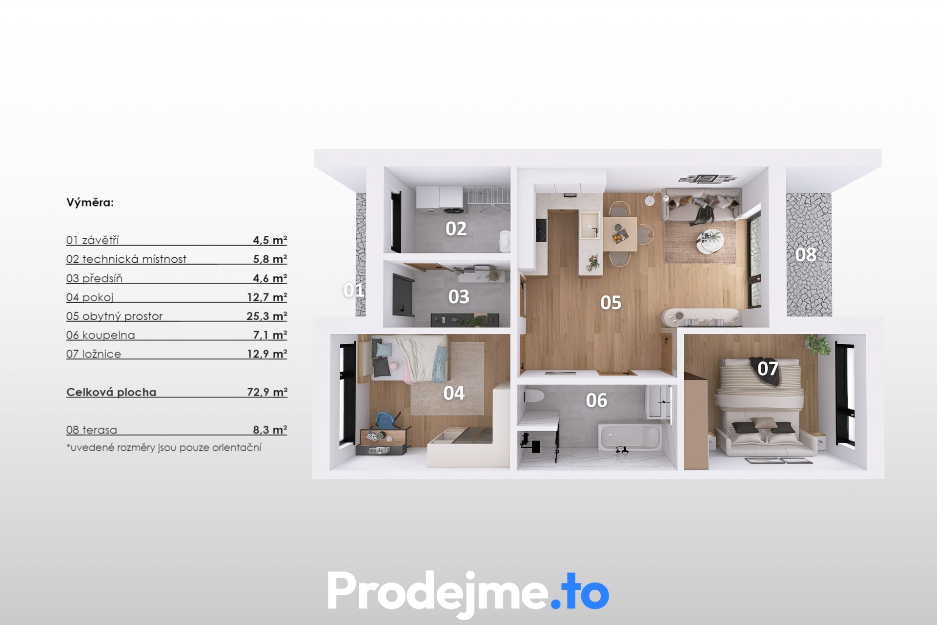 Praktickým benefitem je technická místnost hned u vstupu do domu. Nachází se zde plynový kotel, přípojka pro pračku, místo pro regály na uložení věcí a zároveň vstup na půdu, která poskytuje další úložný prostor pro vše, co nechcete mít denně na očích.