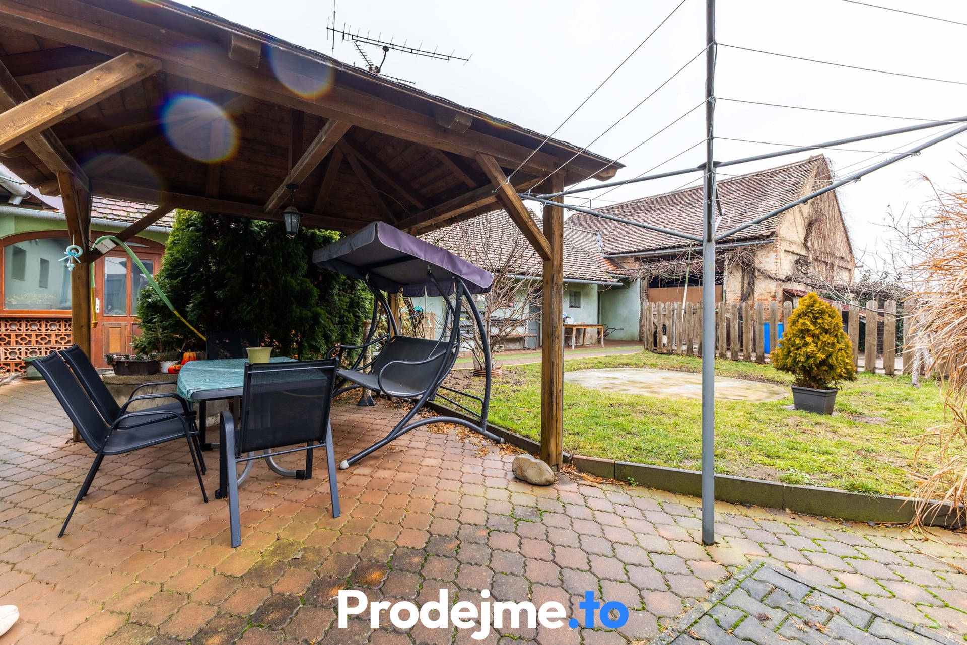 Ve dvoře se zároveň nachází studna s užitkovou vodou, kterou lze využít například pro zalévání nebo údržbu dvora a zahrady. Před domem je navíc instalovaný zavlažovací systém v trávníku, který usnadní péči o zeleň.