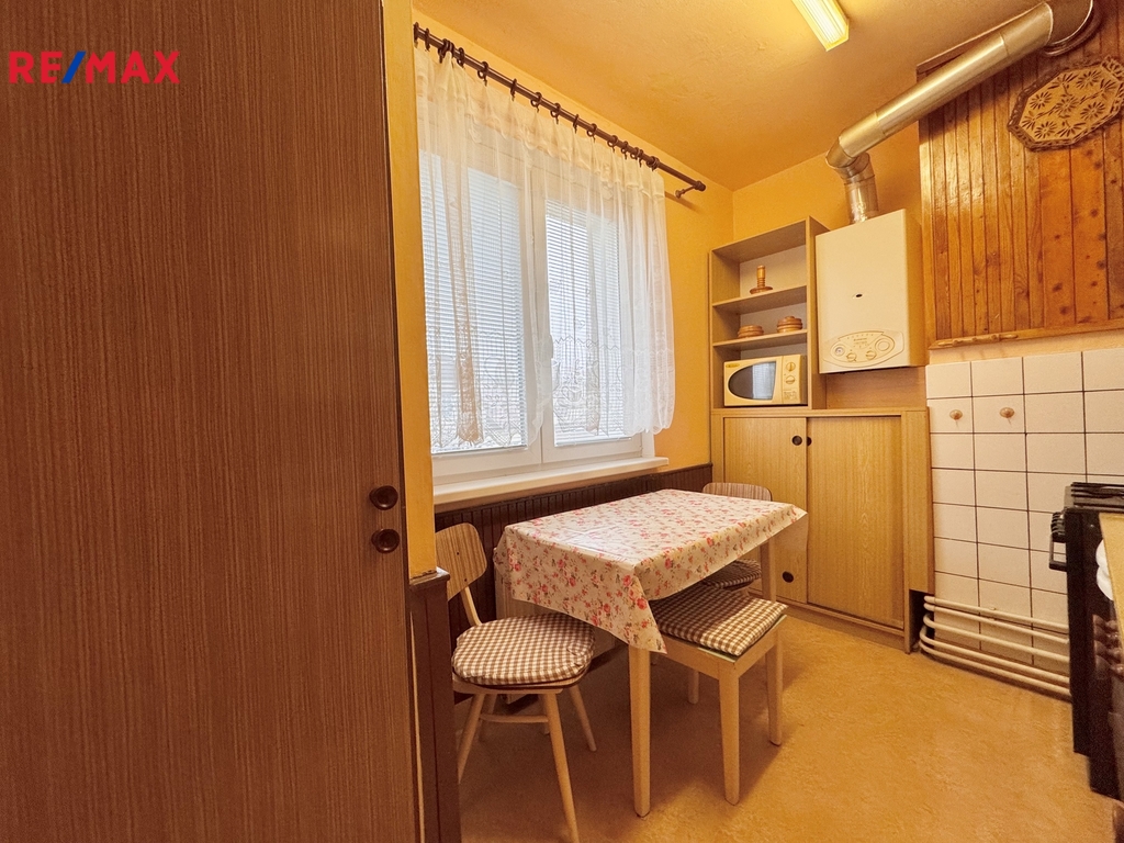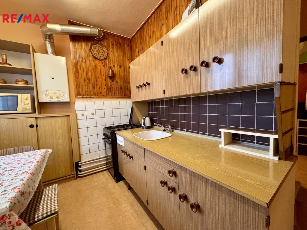 - kuchyně (8,7 m²) se spížní skříní, kombinovaným plynovým kotlem a elektrickým sporákem