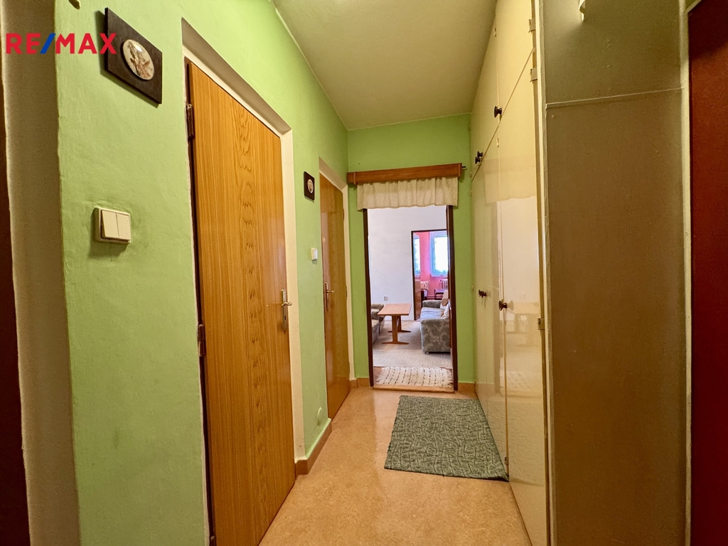 Dům prošel kompletní revitalizací – zateplení, plastová okna se žaluziemi, nová střecha, balkony i stupačky. Starosti tohoto typu tady opravdu řešit nemusíte.