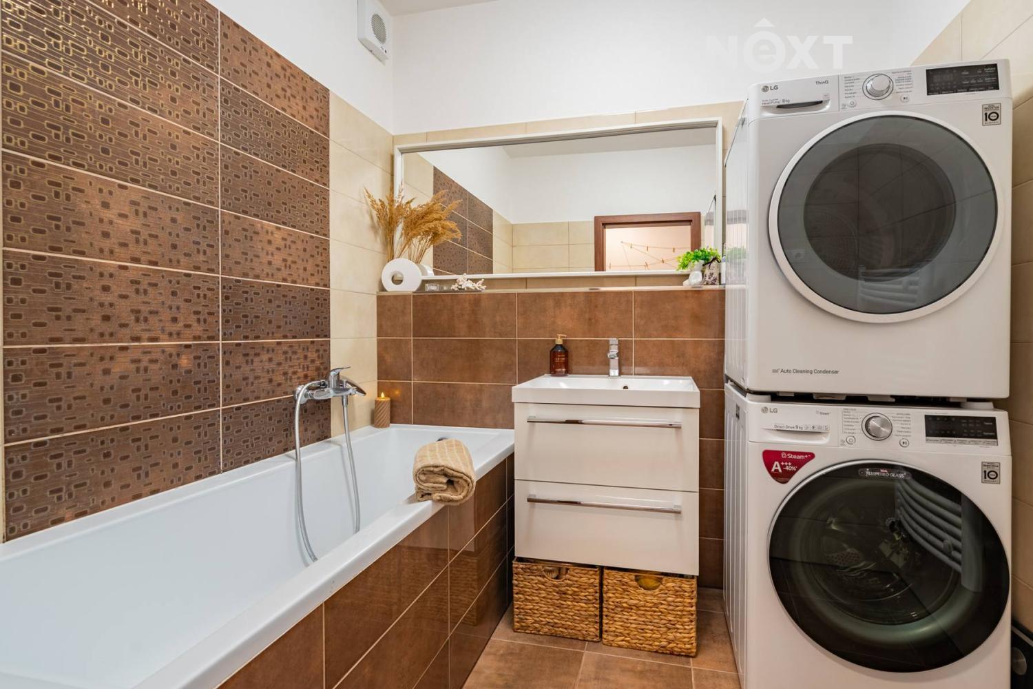 Interiér bytu zaujme promyšleným dispozičním řešením, kvalitním zpracováním a vyšším standardem vybavení. Kuchyňská linka byla vyrobena na míru a je vybavena vestavnými spotřebiči – myčkou nádobí, lednicí, indukční varnou deskou, mikrovlnnou troubou a elektrickou troubou. Součástí kuchyně je také podsvícený barový pult a snížený podhled se zabudovaným osvětlením, který prostoru dodává příjemnou atmosféru i moderní vzhled.