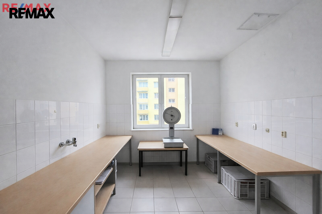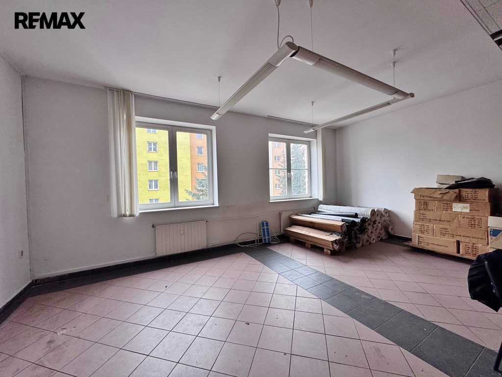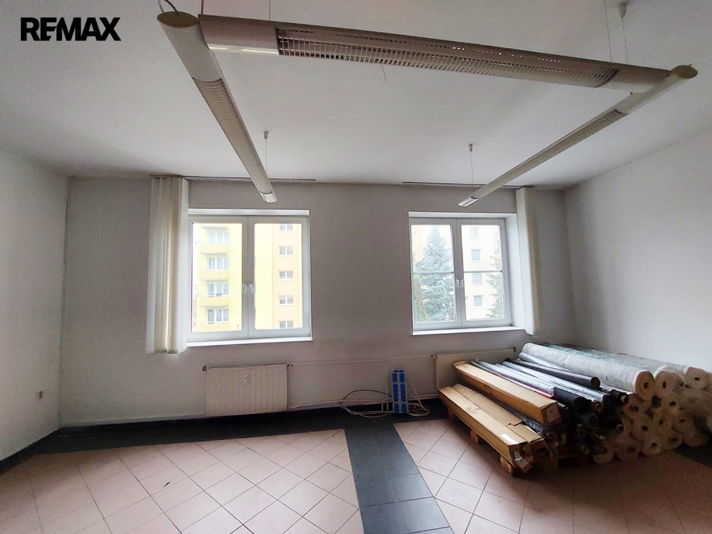 Dominantou prostoru je velká vstupní hala, která může sloužit jako hlavní obchodní prostor či kanceláře. Dále zde najdete několik menších místností, které mohou být využity například jako sklady. K dispozici je také prostorné zázemí v podobě velké kuchyně, šatny, toalety a koupelny se sprchou, což zajišťuje pohodlí pro pracovníky. Vytápění je řešeno centrálním plynovým kotlem pro celý dům s rozvody do radiátorů, tímto je řešen i ohřev vody. Dodávka tepla je pro uvedený prostor měřená kalorimetrem.