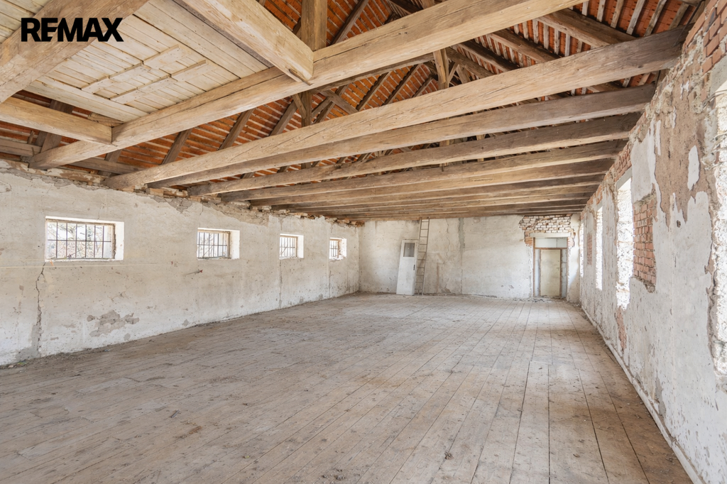 volné prostory vhodné k přestavbě na ubytovací jednotky nebo velký společenský sál