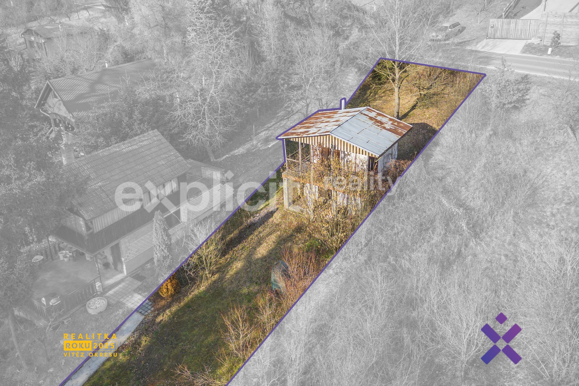 Vizualizace a vyobrazení nemovitosti a pozemku jsou pouze ilustrativní. Závazné údaje o hranicích pozemku jsou uvedeny v katastrální mapě.