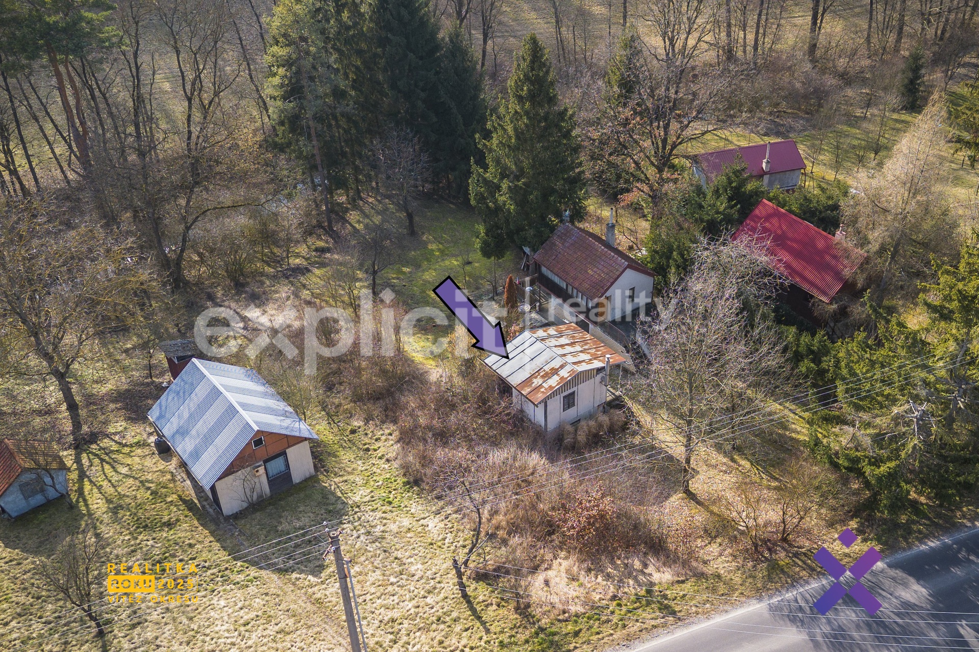 - parkování aktuálně možné naproti chatě, do budoucna doporučeno vybudovat vlastní stání na pozemku