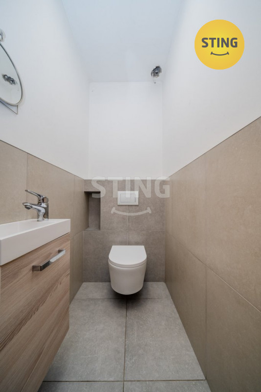 Dále se v přízemí nacházejí dva dětské pokoje, ložnice, koupelna s prostorným sprchovým koutem i vanou, samostatné WC, zádveří a vstup do sklepa i do podkroví přímo z interiéru.