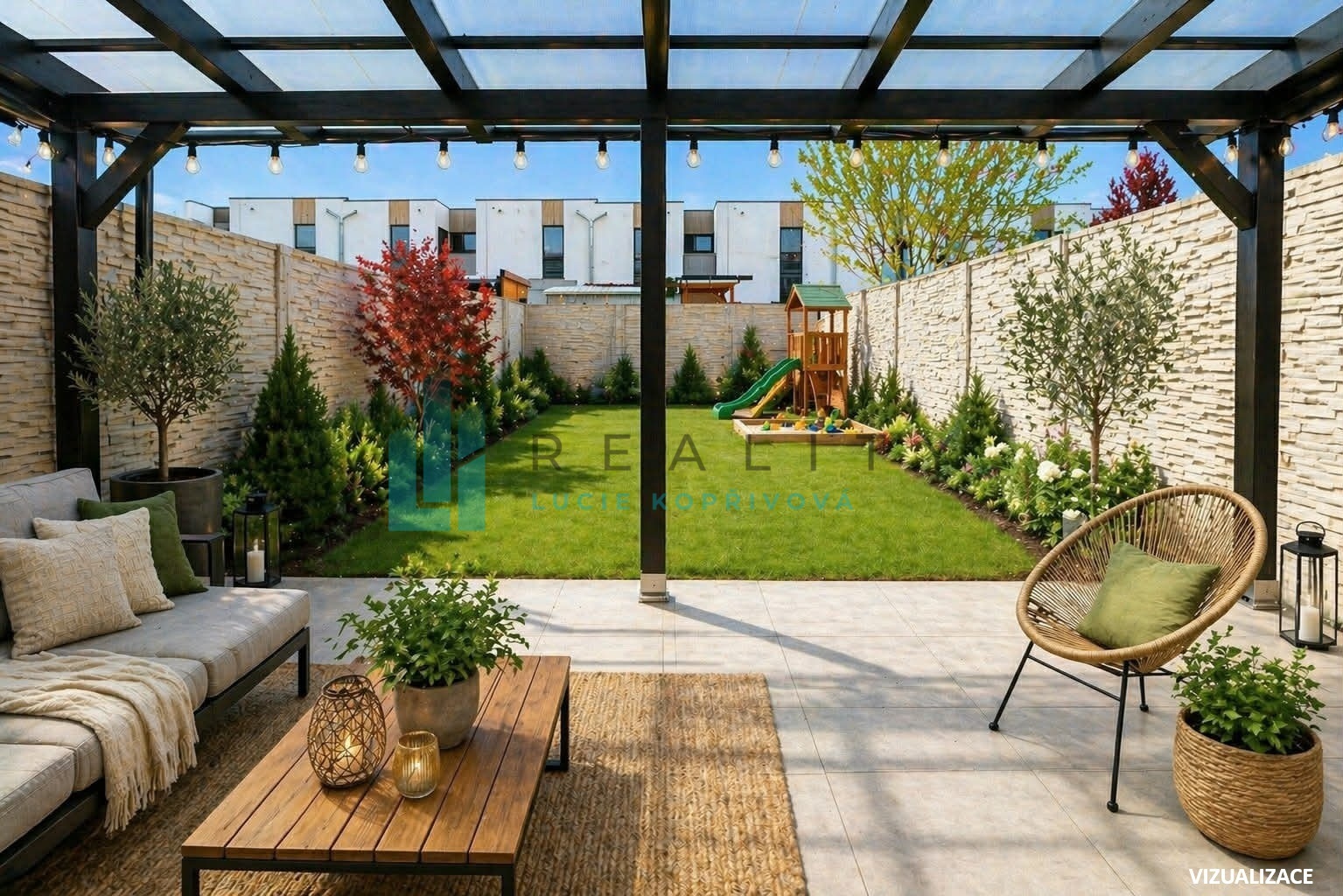• Relax: Dvě terasy a udržovaná zahrada, která plynule navazují na interiér.