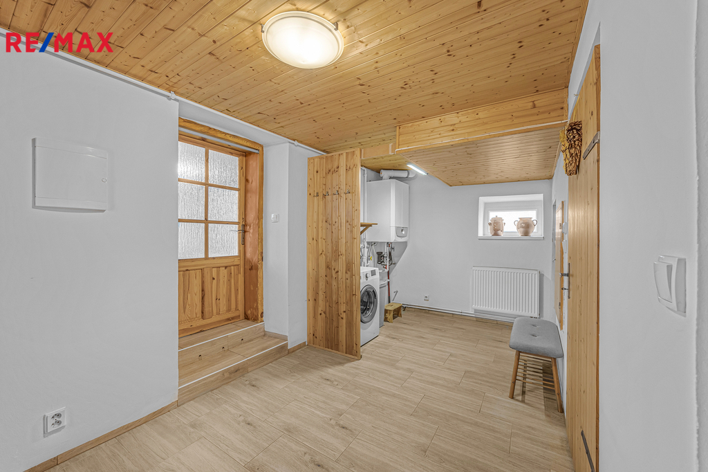 Dům je postavený ze smíšeného zdiva a obytná část prošla modernizací – má novou střechu nad obytnou částí, nové rozvody elektřiny, plynu i topení. Vytápění zajišťují litinová krbová kamna, ohřev vody plynový kotel se zásobníkem (45 l). Dispozice: kuchyň, obývací pokoj, ložnice, koupelna s vanou a WC. Podlahy v obytné části tvoří beton s dlažbou, okna jsou nová – trojskla. Celý půdní prostor je zateplený a připravený pro další využití – ať už toužíte po vestavbě, ateliéru nebo jen prostorném skladovacím zázemí. Mezi domem a stodolou se nachází menší sklípek.