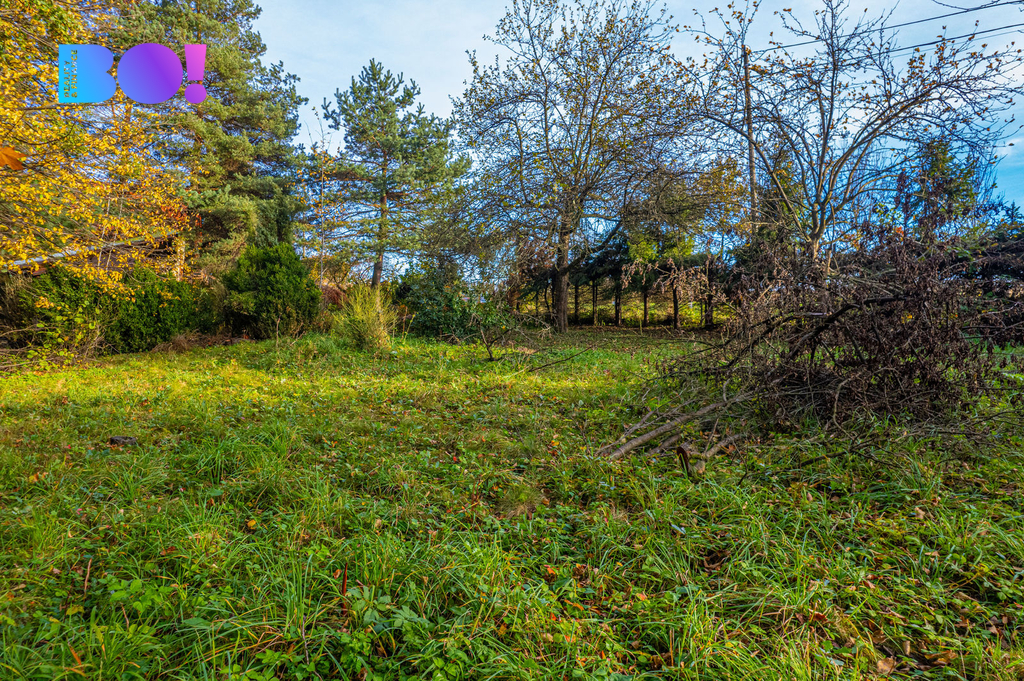 Místo zatím sloužilo jako zahrada. Stromy, vzrostlé okrasné keře, starší kůlna i oplocení potřebují údržbu, ale úpravou nebo jednoduchým odstraněním získáte zajímavý prostor. Pozemek je z jedné strany propojený s lesem a volným prostorem, z druhé strany s výhledem na pole a louky lemované pahorky.